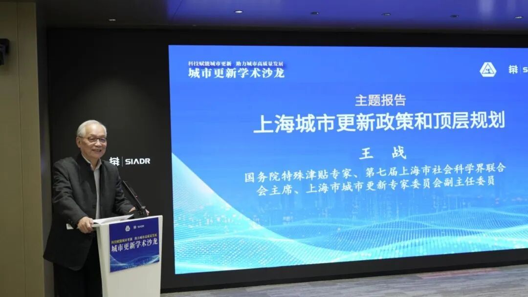 国务院特殊津贴专家、第七届上海市社会科学界联合会主席、上海市城市更新专家委员会副主任委员王战围绕“上海城市更新政策和顶层规划”作主题报告,从宏观层面解读了上海市城市更新政策,从顶层规划设计角度阐述了城市更新高质量发展的内在逻辑,为全力推进城市更新行动提供了决策建议和参考,为超大城市转型发展分享了宝贵的经验。