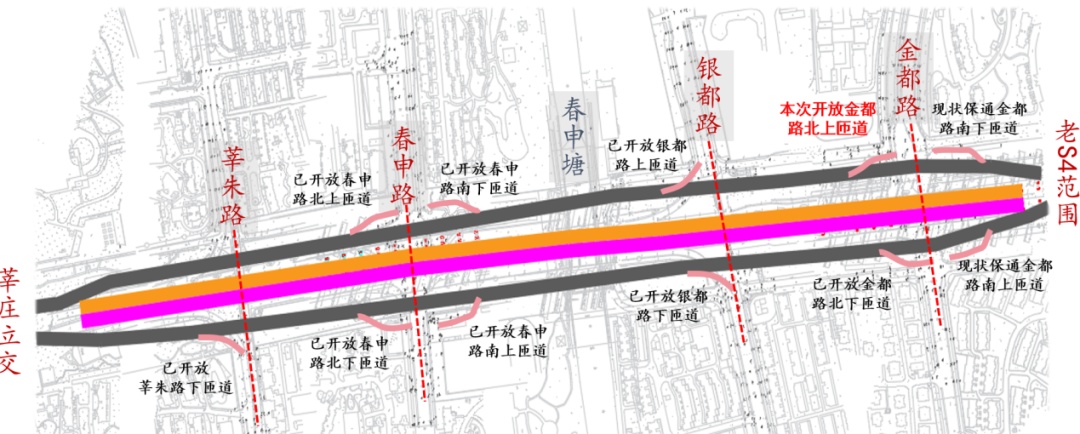 S4沪金高速入城段(莘庄立交—金都路)交通功能完善工程高架主线已于今年6月正式通车。受制于工程建设需要,金都路北上匝道未能同期开通。