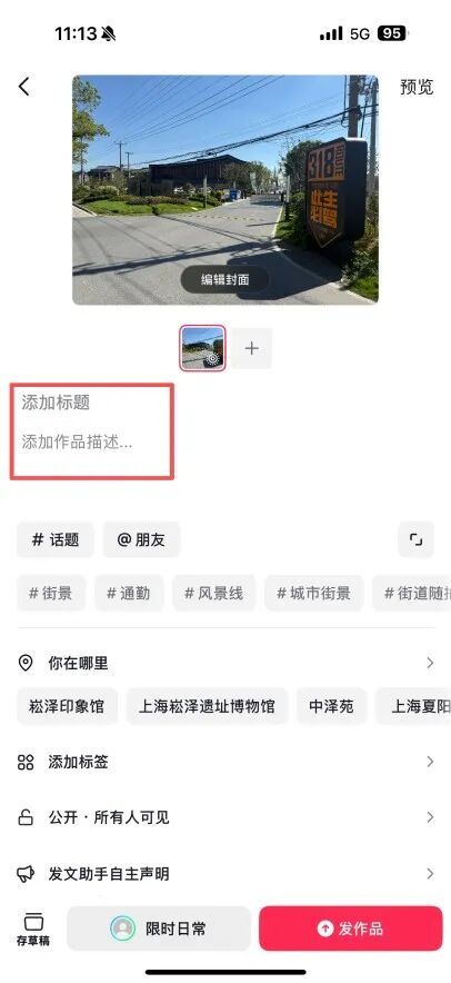 步骤1:登录或开通抖音账号 个人号、企业号均可使用(已有账号直接参赛)。 步骤2:创作内容(视频或图文) 内容方向:展示青浦“吃、住、行、游、娱、购”及线路、点位、体验等,可结合元旦迎新、在青浦过年等主题。 形式要求:短视频(建议15秒-5分钟,清晰稳定,可配字幕/配音) 图文(照片+简短文字,类似于微信朋友圈) 原创要求:作品须原创,不得侵权,内容真实积极 步骤3:发布参赛作品(关键动作) ★打开抖音 ★选择要上传的图片或视频,点击“下一步”。 ★填写作品标题和作品描述(发布可配文字参考:“青浦不远,美好更近”“休闲到青浦,此处最江南”等。) ★点击“#话题”,添加两个必选话题:#域见上海 #域见青浦,之后点击“完成”。 ★选择“公开·所有人可见”,点击“发作品”即视为成功参赛。 资料:青浦文旅 编辑:吕斌
