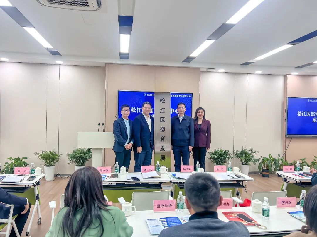活动现场,朱敏与陈小华共同宣布松江区德育发展中心成立,领导嘉宾共同合影留念。中心的成立,标志着松江德育工作迈入体系化、专业化发展的新阶段,将为区域落实“立德树人”根本任务提供有力支撑。