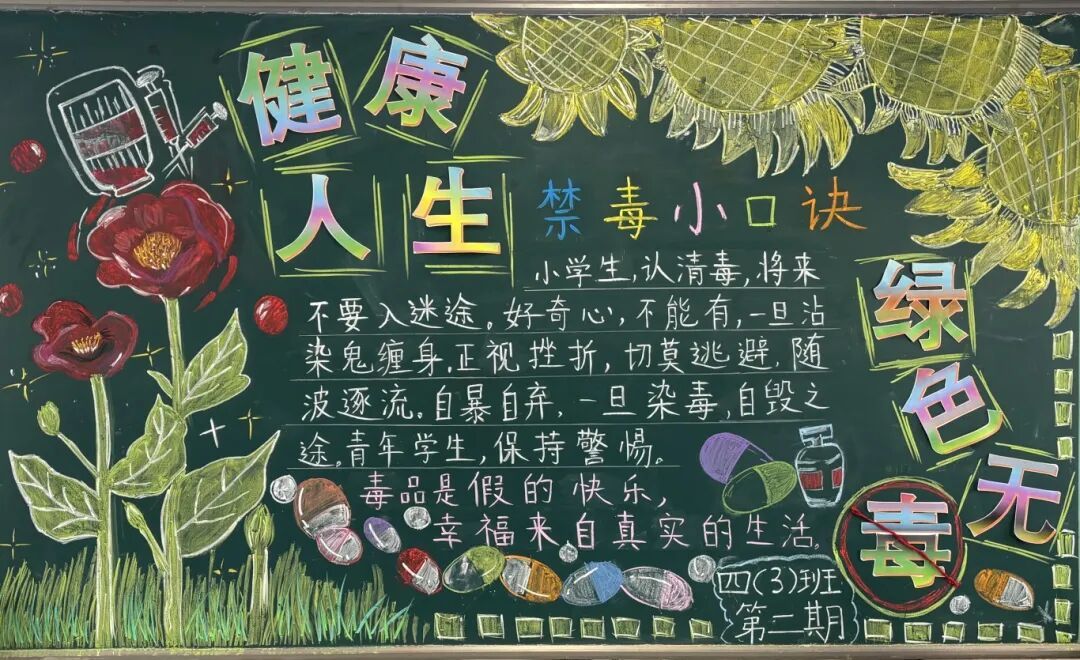 二实小充分运用禁毒宣传素材资料,将禁毒知识送进校园。各班级积极响应号召,以"健康人生 绿色无毒"为主题,精心策划了禁毒专题黑板报宣传活动。通过图文并茂的形式,向全体师生传递禁毒知识,倡导健康生活方式,营造浓厚的校园禁毒氛围。