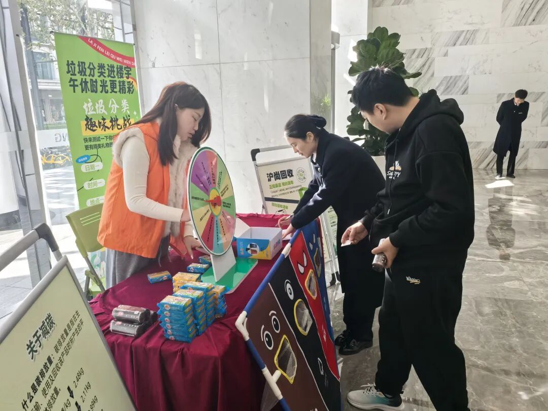 现场还设置了“分类投投乐”“环保大转盘”等趣味游戏,吸引了大量白领驻足参与。大家在轻松愉快的氛围中巩固了垃圾分类知识,成功通关后还能获得一份实用的环保小礼品,成就感十足。