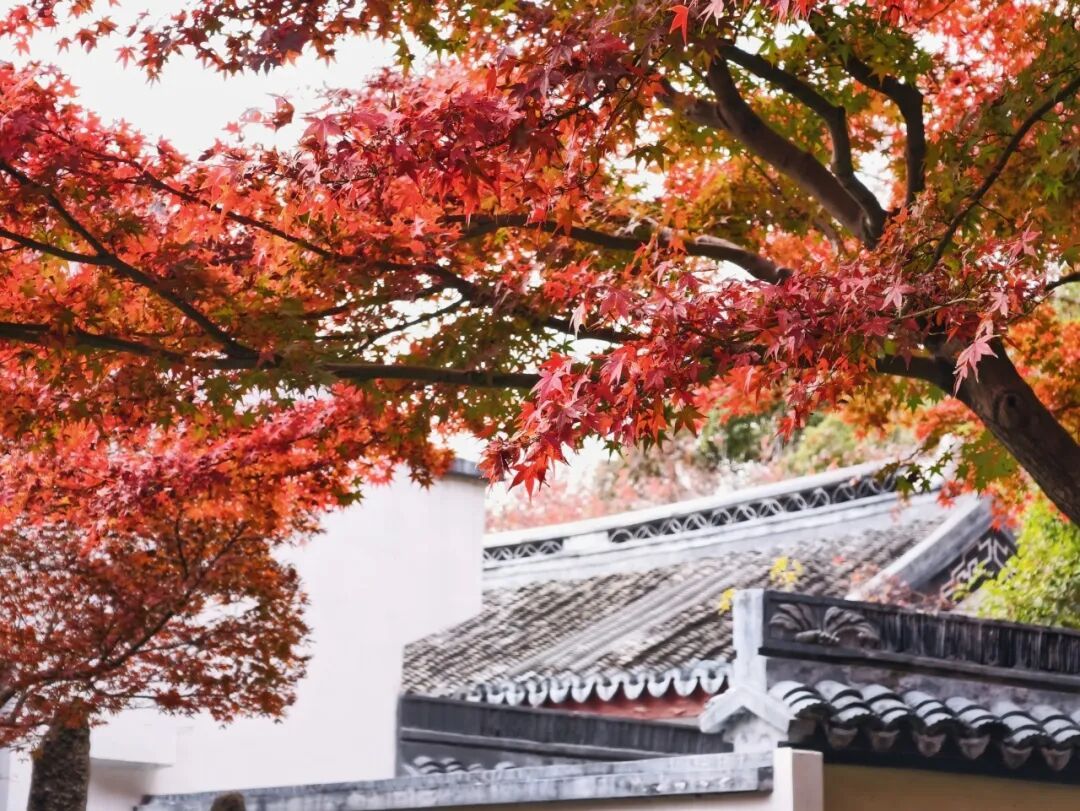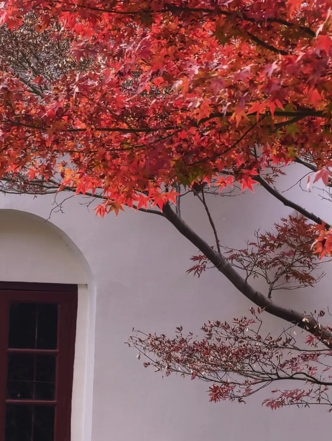 一到这个季节,赏红枫便是中国人骨子里的风雅。不必远赴江南,也无需遍寻名山——在静安,就藏着一处红枫与白墙黛瓦相映的幽静天地,堪称冬日中式美学的“小众顶流”。