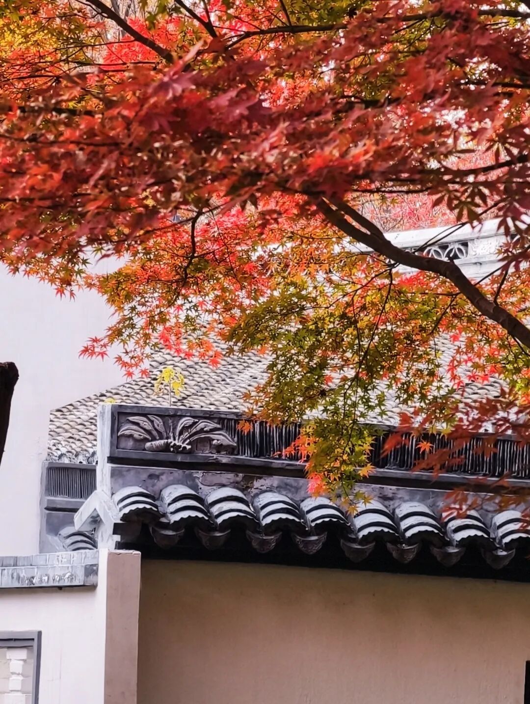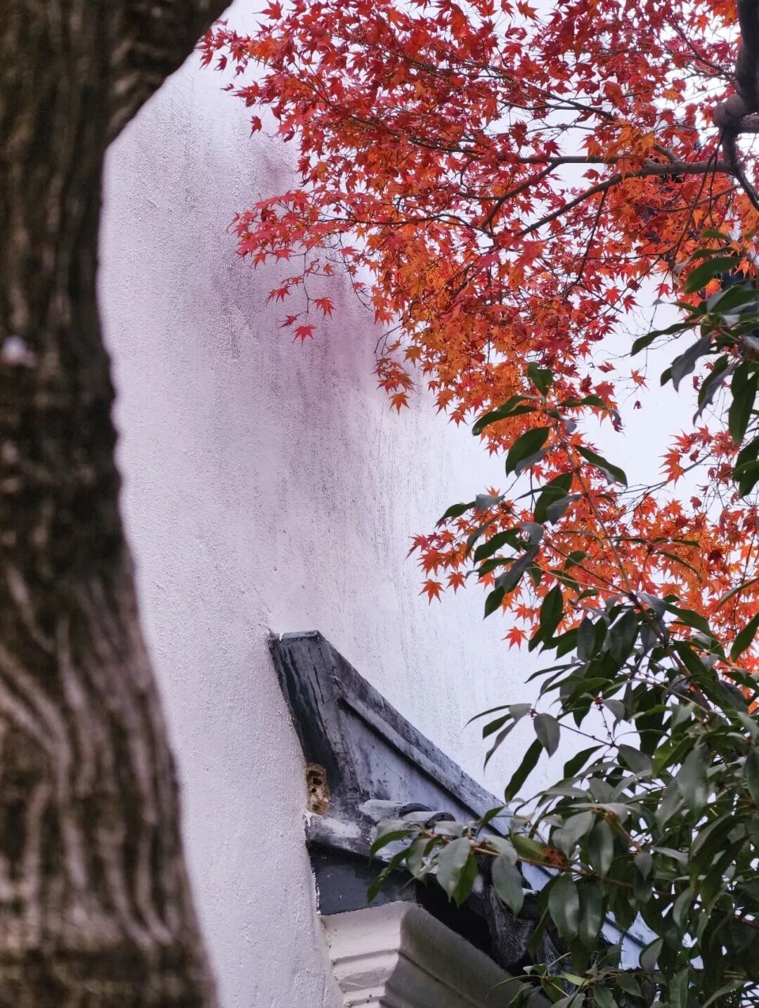 白墙为纸,红叶作画。亭台临水,曲径通幽。这里没有喧嚷的人潮,只有风过檐角、叶落石阶的清音,每一步都像走进一幅被时光温柔封存的园林画卷。