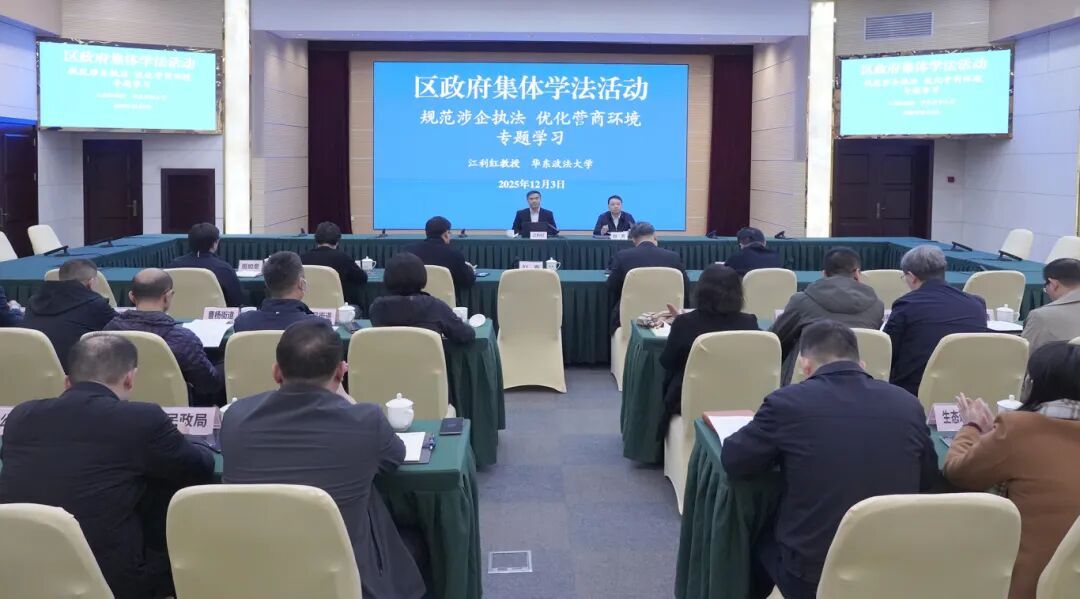 12月3日,区政府集体学法活动举行。区委副书记、区长赵亮主持会议并讲话。会议邀请到华东政法大学教授、博士生导师江利红作专题授课。