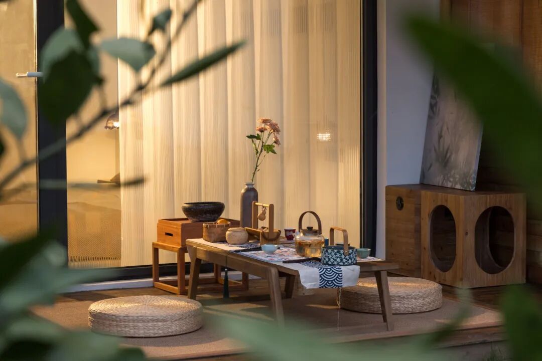 民宿以中式素雅为魂,将江南水乡的温婉与乡村原生肌理巧妙相融。一楼空间灵动百变,亲子家庭、好友结伴、企业团队、主题轰趴,都能在此找到专属天地。