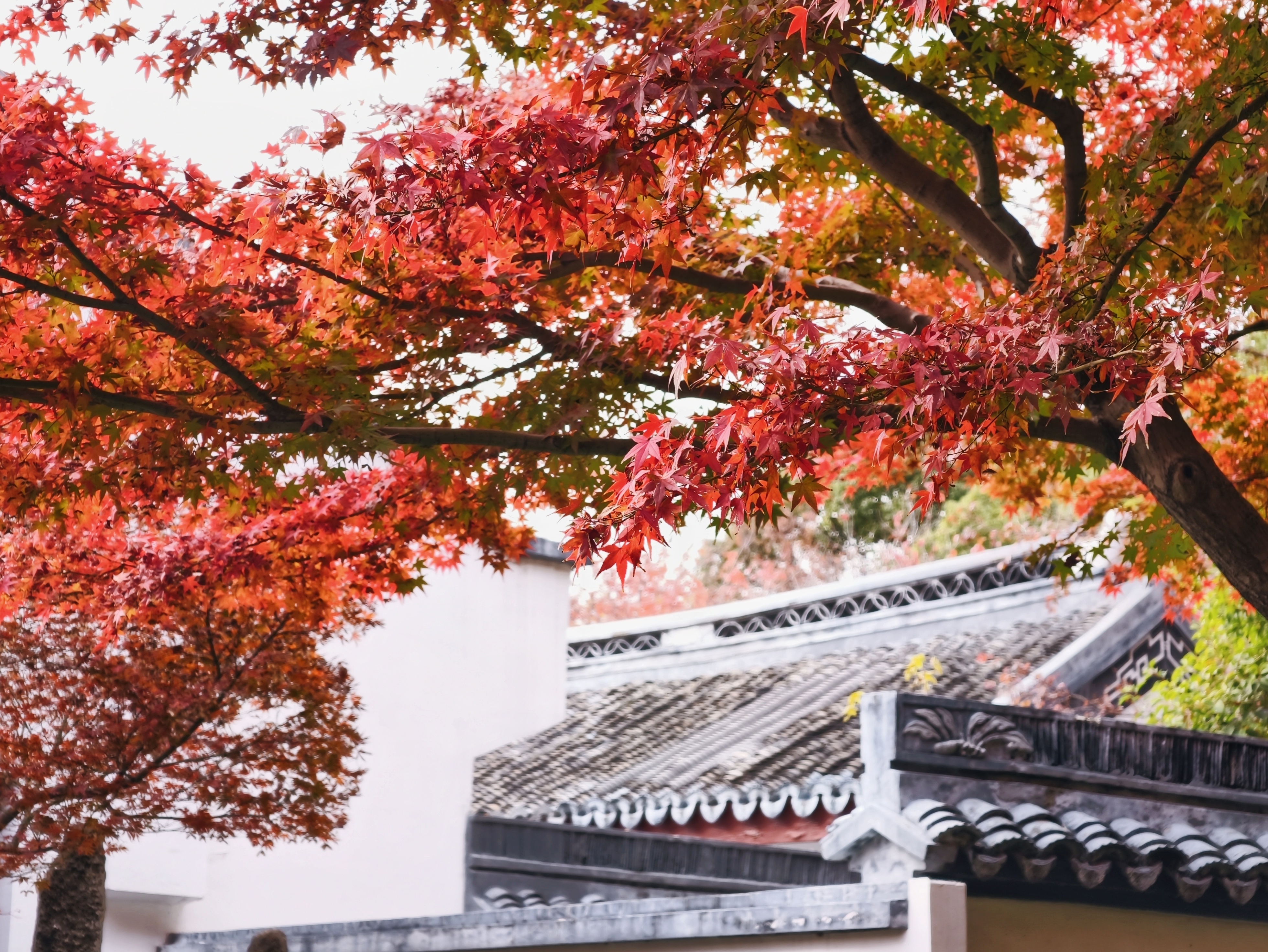 白墙为纸,红叶作画。亭台临水,曲径通幽。这里没有喧嚷人潮,只有风过檐角、叶落石阶的清音,每一步都像走进一幅被时光温柔封存的园林画卷。