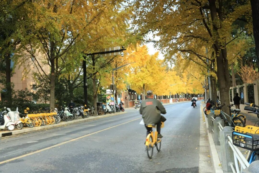 龙溪路的秋色由无患子叶轻轻描绘。叶片从淡黄渐变为深金,为路面铺上斑斓的色彩。落叶与沿街建筑风格相互呼应,灵动自然与沉稳人文交织,每一步都可能遇见意想不到的秋日惊喜。