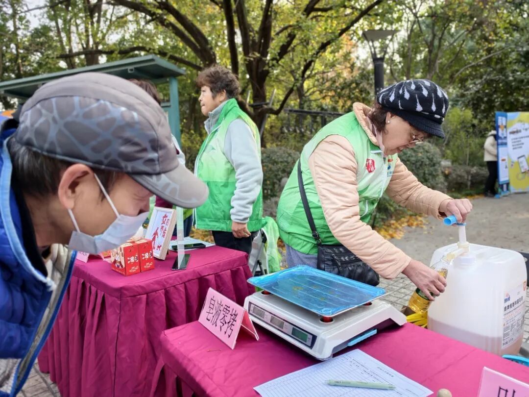 活动现场,“皂液零拷”服务台前排起了长队。这看似简单的便民服务,背后却是社会组织对绿色低碳环保理念的专业化推广,通过提供可重复使用的容器减少塑料浪费,将环保实践巧妙融入居民的日常生活圈。