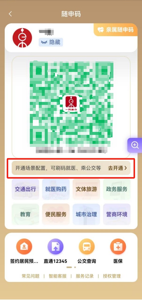 打开“随申办市民云”(APP/微信小程序/支付宝小程序),首页点击“随申码”,开通交通场景配置,完成签约,即可使用。全市地铁、公交、轮渡“一码通行”。