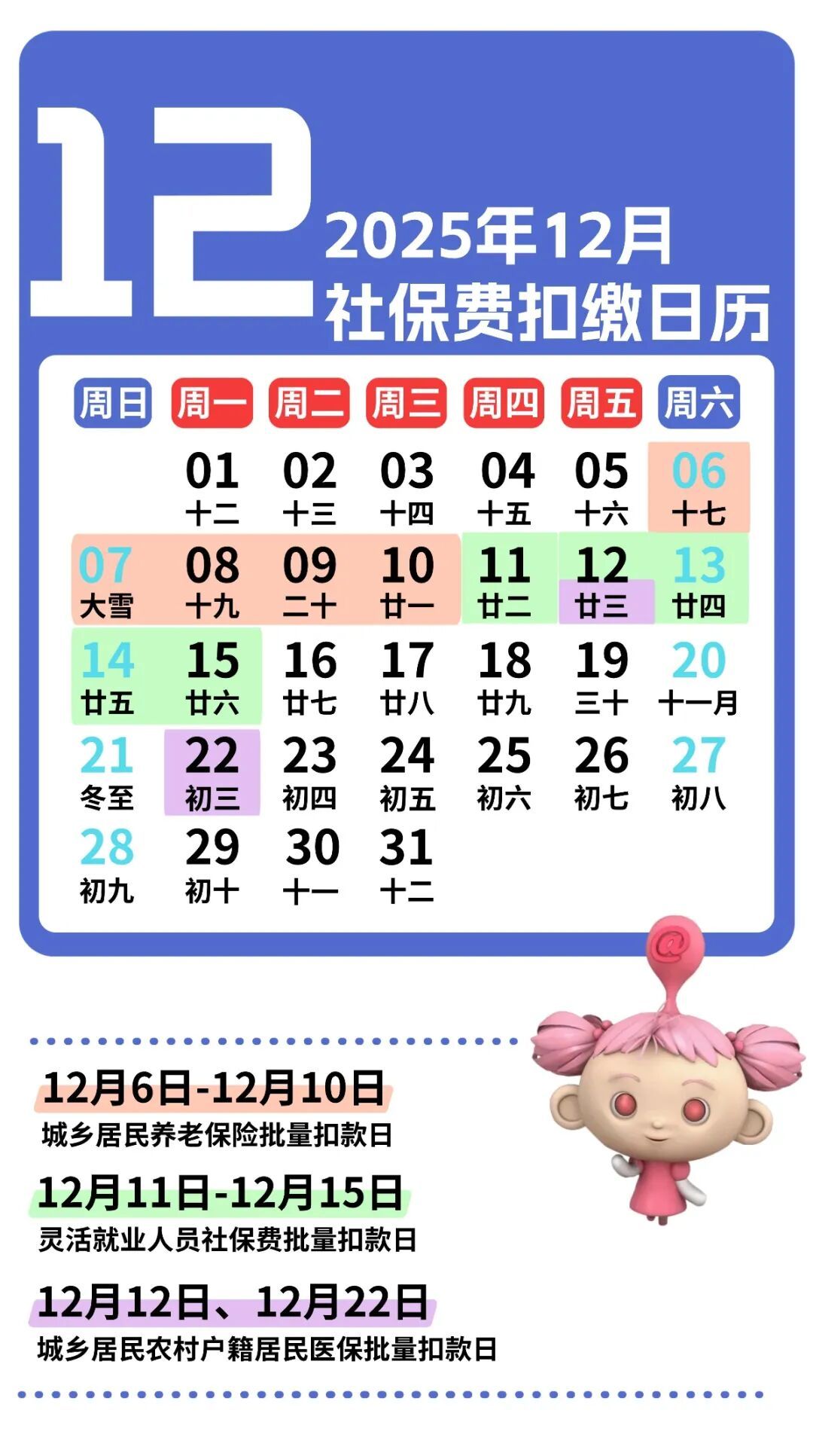 现将2025年12月本市自然人社会保险费扣款时间安排告知如下,快来查收吧!