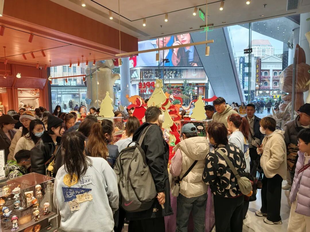 数据显示,南京路步行街去年接待客流达1.02亿人次,消费人数突破452.9万,其中年轻客群占比持续攀升,为二次元业态提供了庞大的消费基础。从百联ZX创趣场累计接待超1500万人次、销售额破5亿的亮眼成绩,到名创优品全球壹号店9个月销售额破亿、IP 产品占比超80%的火爆场景,这种“品牌集聚效应”,让这条百年商街成为“多点开花”的二次元消费“目的地”,而非单一店铺的 “流量孤岛”,形成 “潮流消费动线”,这种客流共享让整条步行街的店铺都能受益。