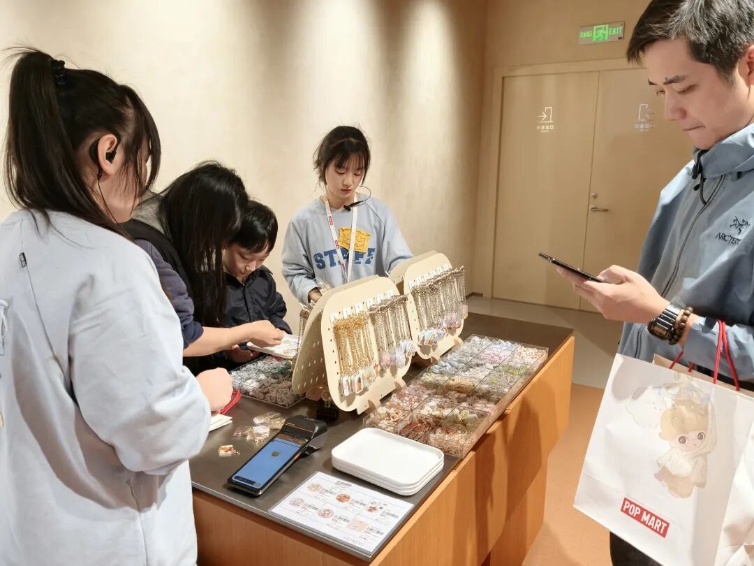 二楼打造的IP主题沉浸场景更实现“一步一景”,营造出层次丰富的体验感。同时,常驻的DIY工作台,构建“收藏—创作—社交”的完整体验链路。消费者可在这里自选配色、动手组装,亲手打造专属潮玩衍生品。