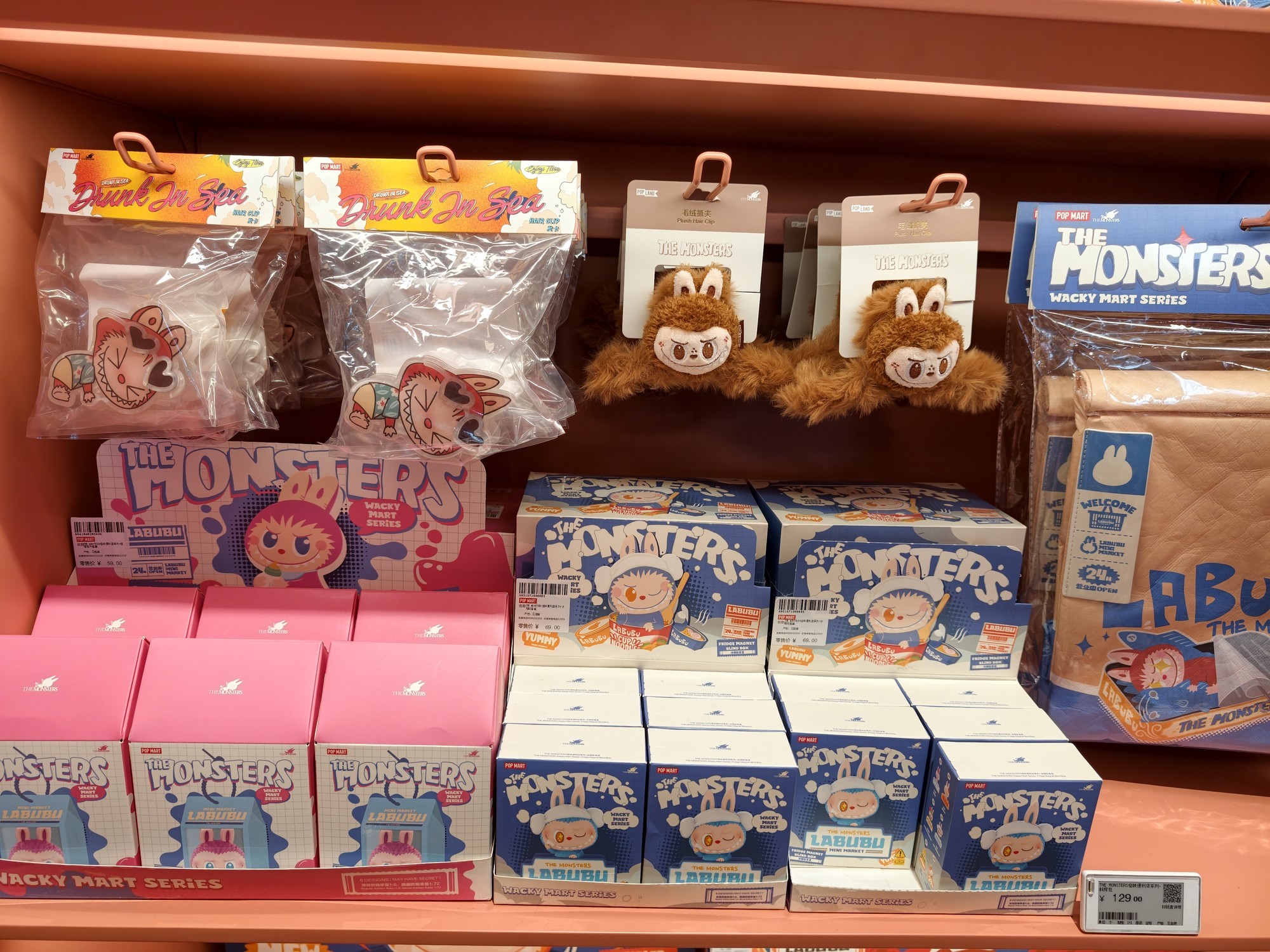 相比于其他门店,全新开业的世茂旗舰店货量也明显充足,LABUBU、星星人等热门系列的产品在这里都能找到。