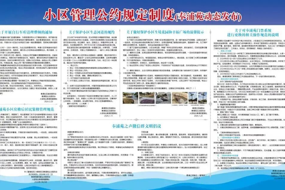 奉浦社区党总支制定了十项规章制度,包括装修管理、文明养宠、车辆管理等内容,并公开公示管理依据、法律依据,确保每一项管理行为都“有章可循、有法可依”。党总支牵头组织“三位一体”“有事多商量”联席会议,对社区事务、重大决策进行“共商、共议、共决”,在会议纪要上当场签字确认,形成决策共谋、责任共担的闭环管理。在面对停车位改造、物业费提价、维修资金使用等复杂问题时,能迅速达成共识,集结资源,共同推进解决,实现从“管得住”向“管得好”的转变。