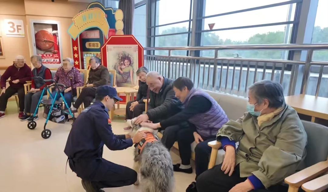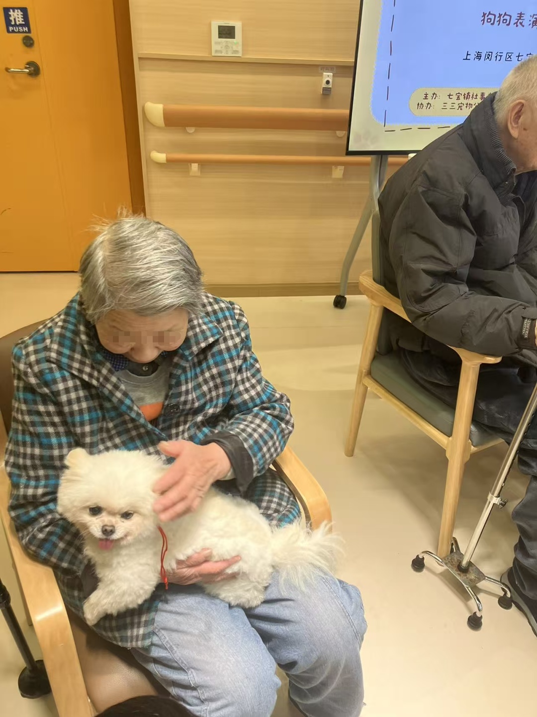 近日,一场特殊的心理疗愈在七宝镇敬老院展开,由三三宠物公益服务中心所带来的5只疗愈犬作为“特别心理辅导老师”,给身居敬老院内的老人们送上了特殊的心灵慰藉。老人们或久坐抚摸,或在训犬师陪同下尝试抱起这些“毛孩子”,毛茸茸的温暖打破了老人的心墙,让笑容挂上了老人们的脸庞。
