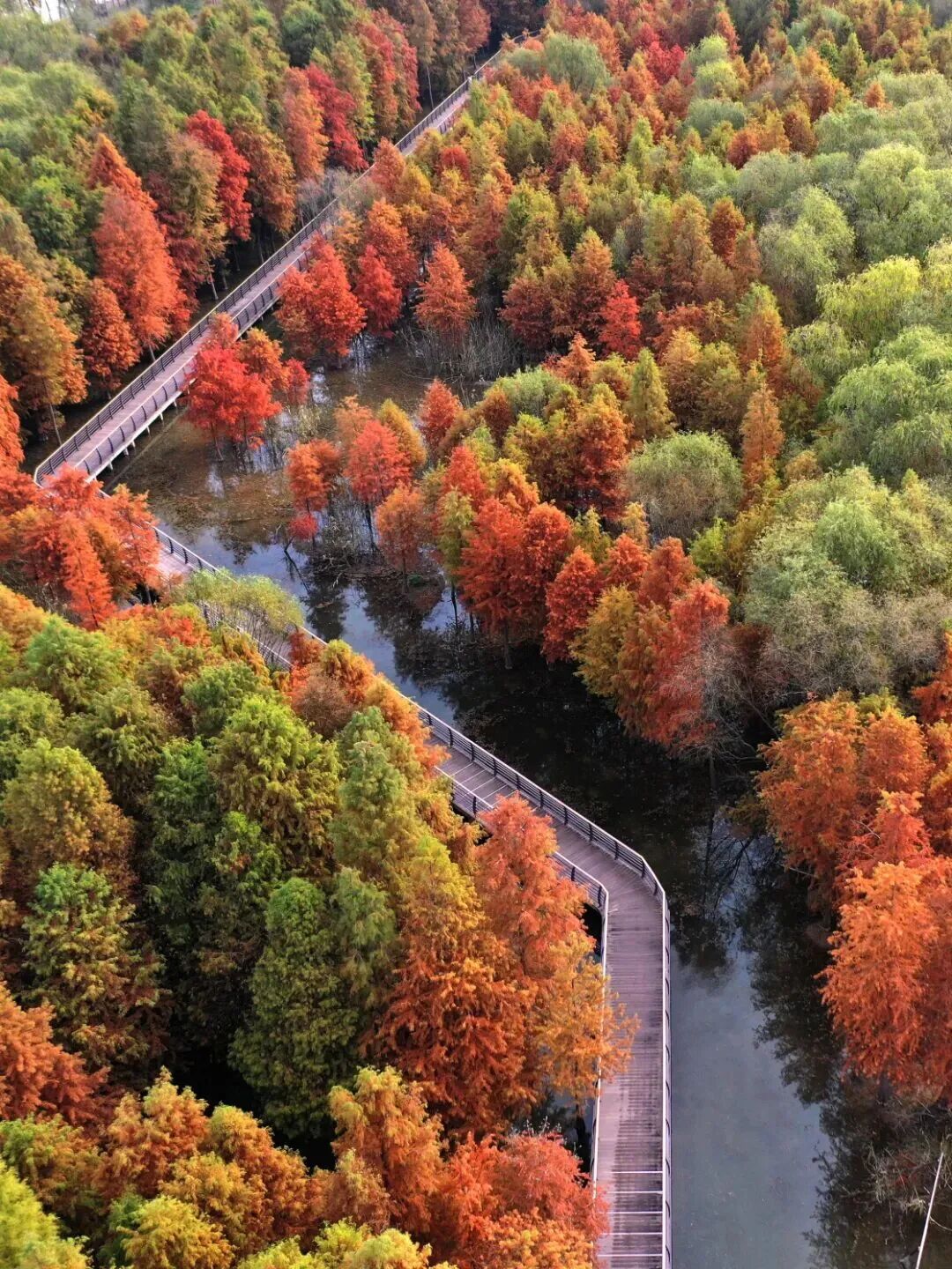 穿行在蜿蜒的木质栈道上,两侧的芦苇荡高过人头。夕阳为每根芦穗镀上金边,微风拂过时,整片芦苇荡仿佛被点燃的火焰。以这片摇曳的金色海洋为前景,你的剪影与落日同框,氛围感瞬间满格。