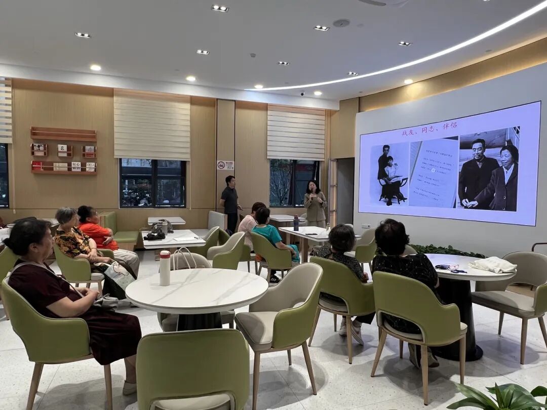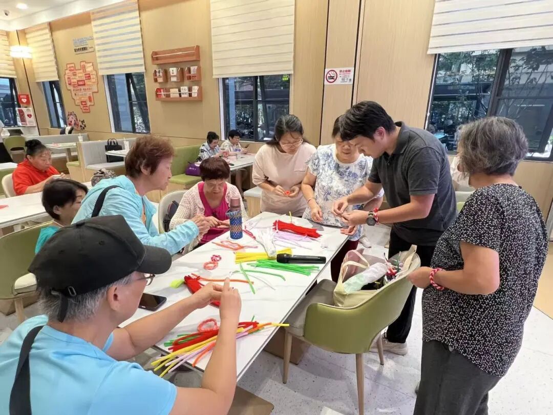荟心食坊是广中路街道开设的第三家社区长者食堂,与前面两家食堂相比,这里虽然没有紧邻市民驿站,却在布局上预留了居民自主活动的空间。在食堂非营业时间,居民们可以在食堂内休闲聚会,街道和居委也会不定期举办主题活动,邀请居民共同参与。