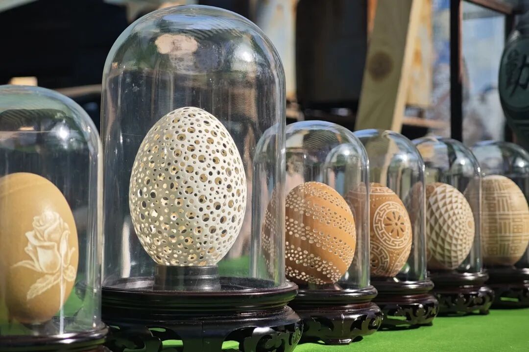 蔡氏剪纸和淞南蛋雕都是民间传统技艺,用最简单的纸张和鸡蛋,通过精湛手法便能做出充满艺术感的作品,充分彰显了文化积淀与内涵,让不少行人驻足欣赏。