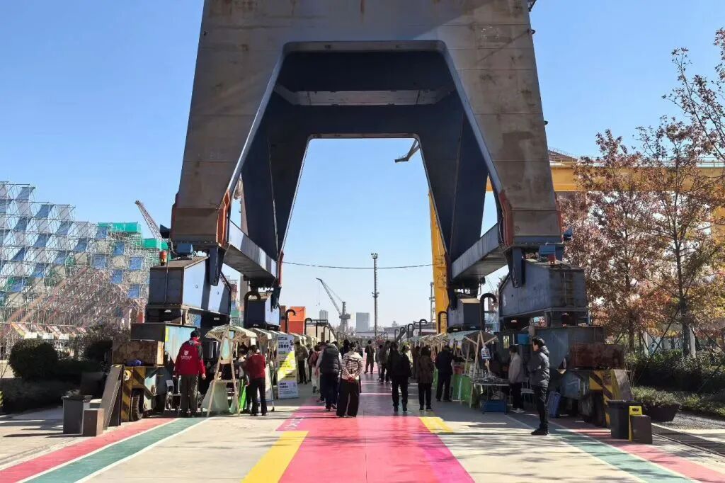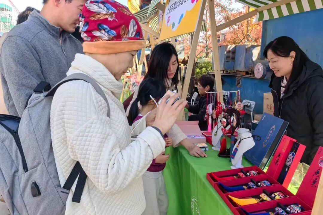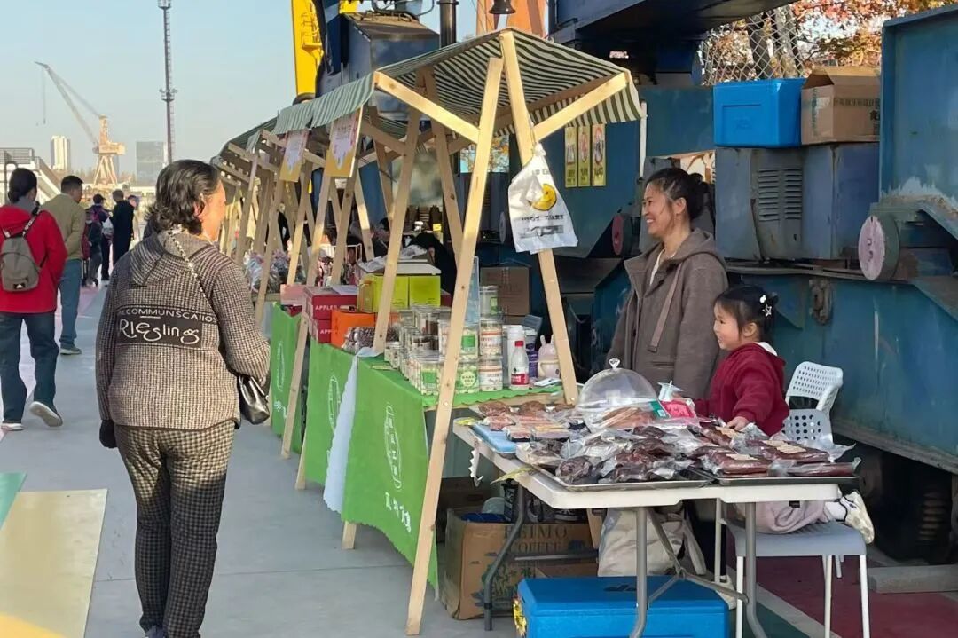 11月29日,2025上海城市空间艺术季“沪派江南-复兴市集”第四期宝山专场在复兴岛火热开市。步入船台PARK上的复兴市集,无处不体现着北上海门户的宝山元素和三江交汇的江海气息。宝山“长滩金箍棒”香囊、高境蔡氏剪纸、淞南蛋雕、吴淞面塑、大场棕编,还有刚从罗店远景村泥土采摘的蔬菜水果、远景粮仓收割的大米、月浦一水间花市种植的鲜花等等,共同在这百年工业遗址的画布上,绘就了一幅烟火弥漫、热闹非凡的沪派江南新图景。