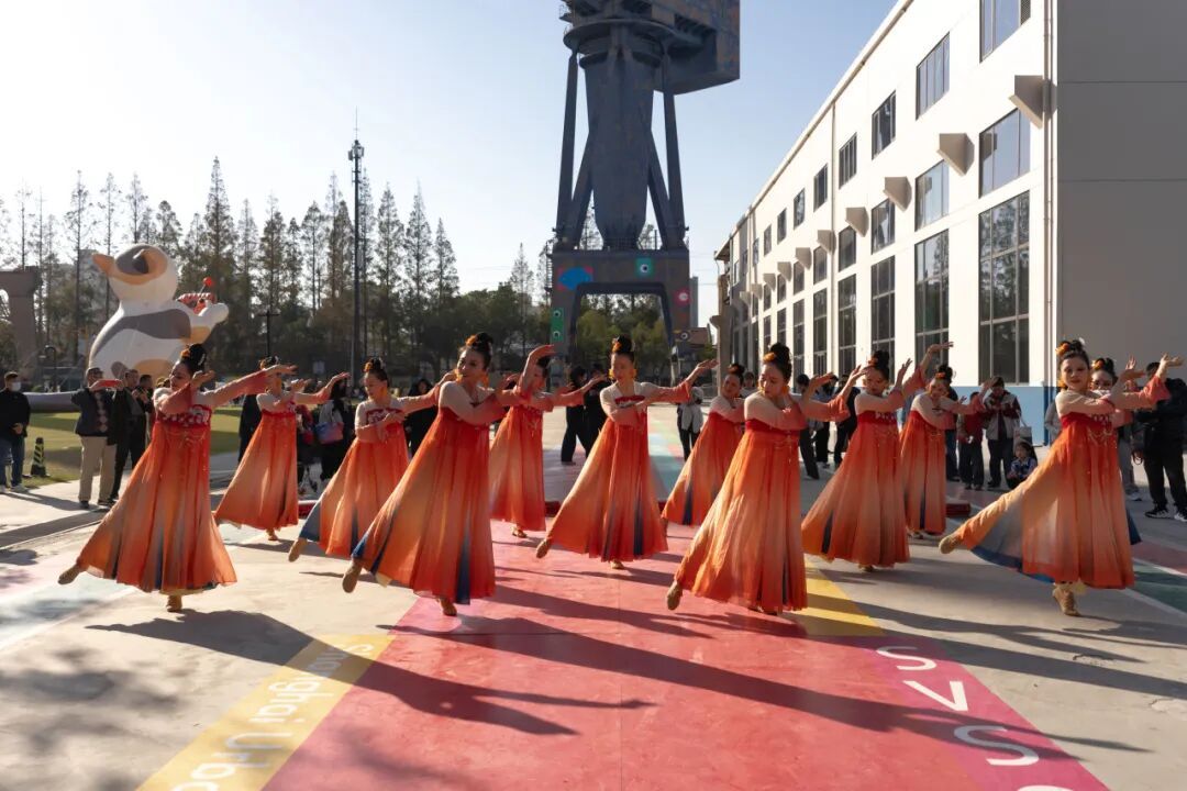 随后而来的月浦锣鼓舞蹈也不遑多让。随着音乐响起,月浦常青艺术团的舞者们便开始翩翩起舞,不时变换队形,舞姿轻盈灵动,曼妙婉约,更妙的是舞蹈巧妙融合传统锣鼓,时而用脚清点,时而手持锣鼓轻摆,将鼓的硬和舞的柔都展现的淋漓尽致,让不少游客都沉浸其中,感受民俗艺术之美。