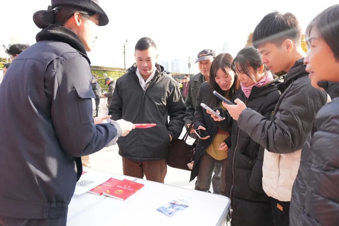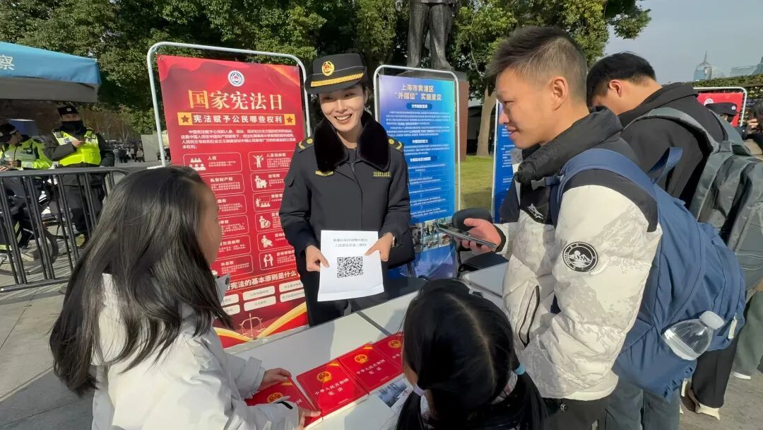 在“宪法与我们”主题展区,各参与单位结合职能特色,让宪法精神具象化呈现:外滩风景区城管中队女子班组以餐厨废弃油脂、建筑垃圾监管为例,解读宪法中“国家保护和改善生活环境和生态环境”的规定如何落地;公安民警通过治安巡查、便民服务案例,诠释宪法“国家尊重和保障人权”的原则实践;交通执法人员围绕非法客运整治、交通秩序规范,讲解如何保障公民出行权利与生命健康权;外滩历史纪念馆则从外滩第一外立面历史切入,展现法治对城市文脉传承与文化建设的保障作用。
