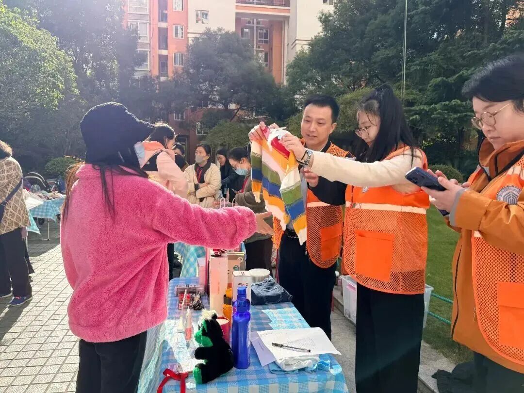 静安区闸北实验小学明德校的同学们则化身“公益小使者”,带着闲置的绘本、玩具和亲手制作的手工艺品来到摊位前,稚嫩的吆喝声充满活力;共和新路派出所的民警带来了文明养宠和反诈宣传,通过发放宣传手册、现场讲解等方式,向居民普及法律法规;锦灏毛孩子团队现场分享流浪猫救助故事,普及科学喂养知识,呼吁居民关爱小动物,传递爱心与责任。