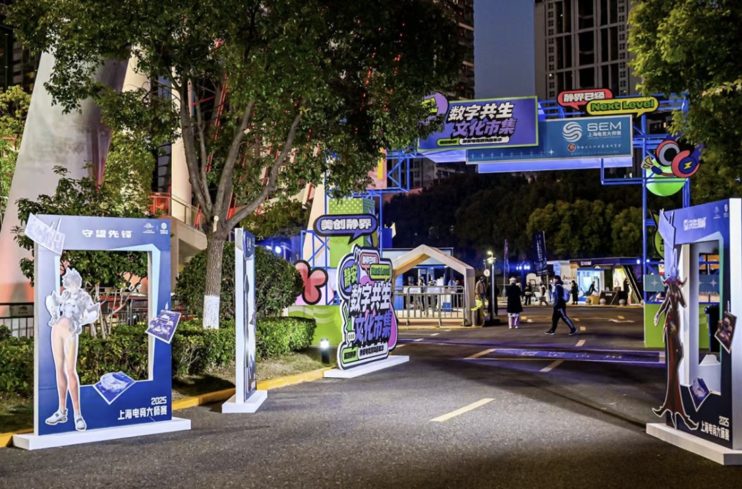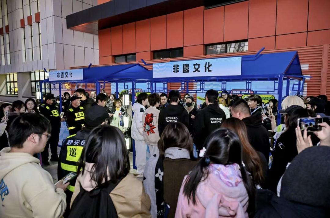 赛事核心区域同样融合了电竞文化与体验消费。静安体育中心外场举办的“静安数字共生文化市集”,汇集了非遗、游戏产业、超高清视听等领域的优质展商,形成吸引多元圈层人群参与、烘托赛事氛围、挖掘消费潜力的活力场域。市民可以在非遗体验、游戏互动等六个主题展位参与活动、积分兑换特色周边,更能直观感受传统文化与前沿数字文化的创新碰撞。
