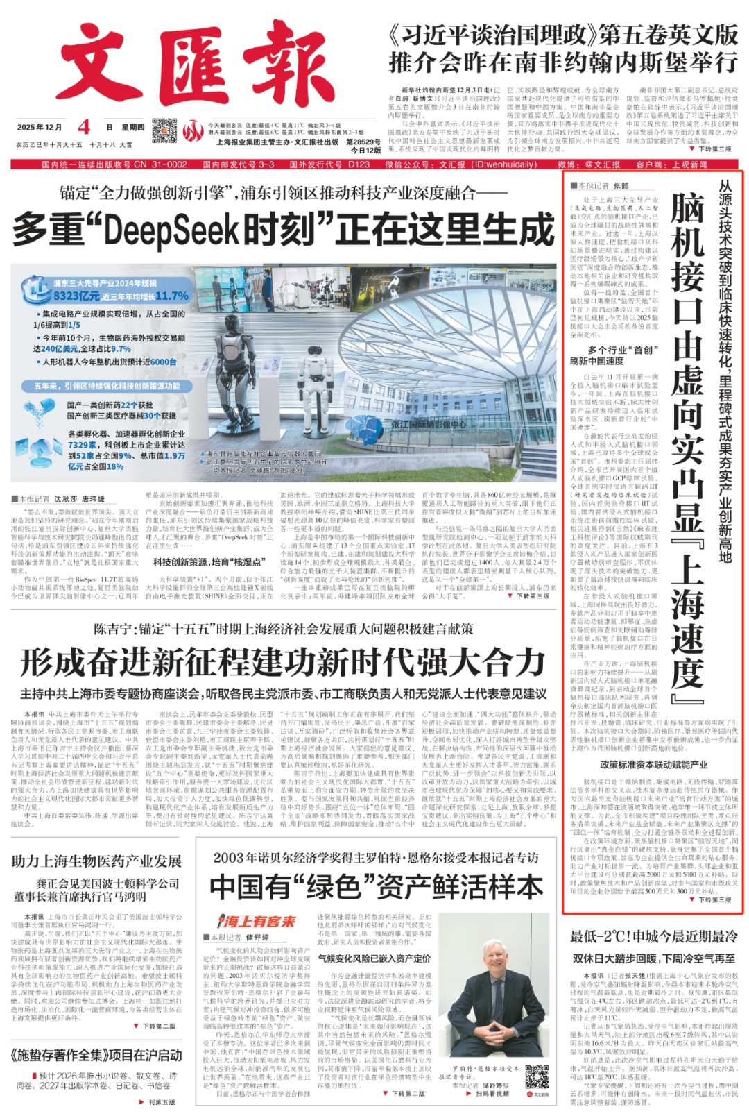 依托国家神经疾病医学中心的优势,华山医院在过去一年完成了近百台脑机接口临床试验手术。距离该院虹桥院区不到500米处,就是全国首个脑机接口集聚区“脑智天地”。如此选址,体现了上海将脑机接口产业核心载体打造为科研、临床、产业联动的“金三角”策略,以创新浓度和协同速度的提升,推动创新成果不断涌现。