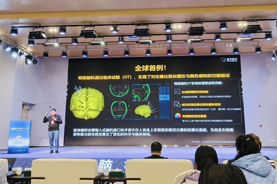 明视脑机的研发思路与Neuralink一致,也是绕开眼部组织,向大脑的视觉皮层输出神经电生理信号。近日,这家企业宣布在全球范围首次实现了对“复杂图形+多种颜色”视觉重建的功能交互验证。在武汉同济医院开展的临床研究显示,对枕叶视觉皮层进行颅内脑电记录和电刺激,让患者的视觉感知从简单光点升级为复杂图形,还获得了色彩感知。