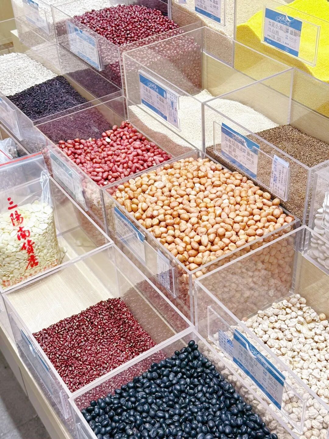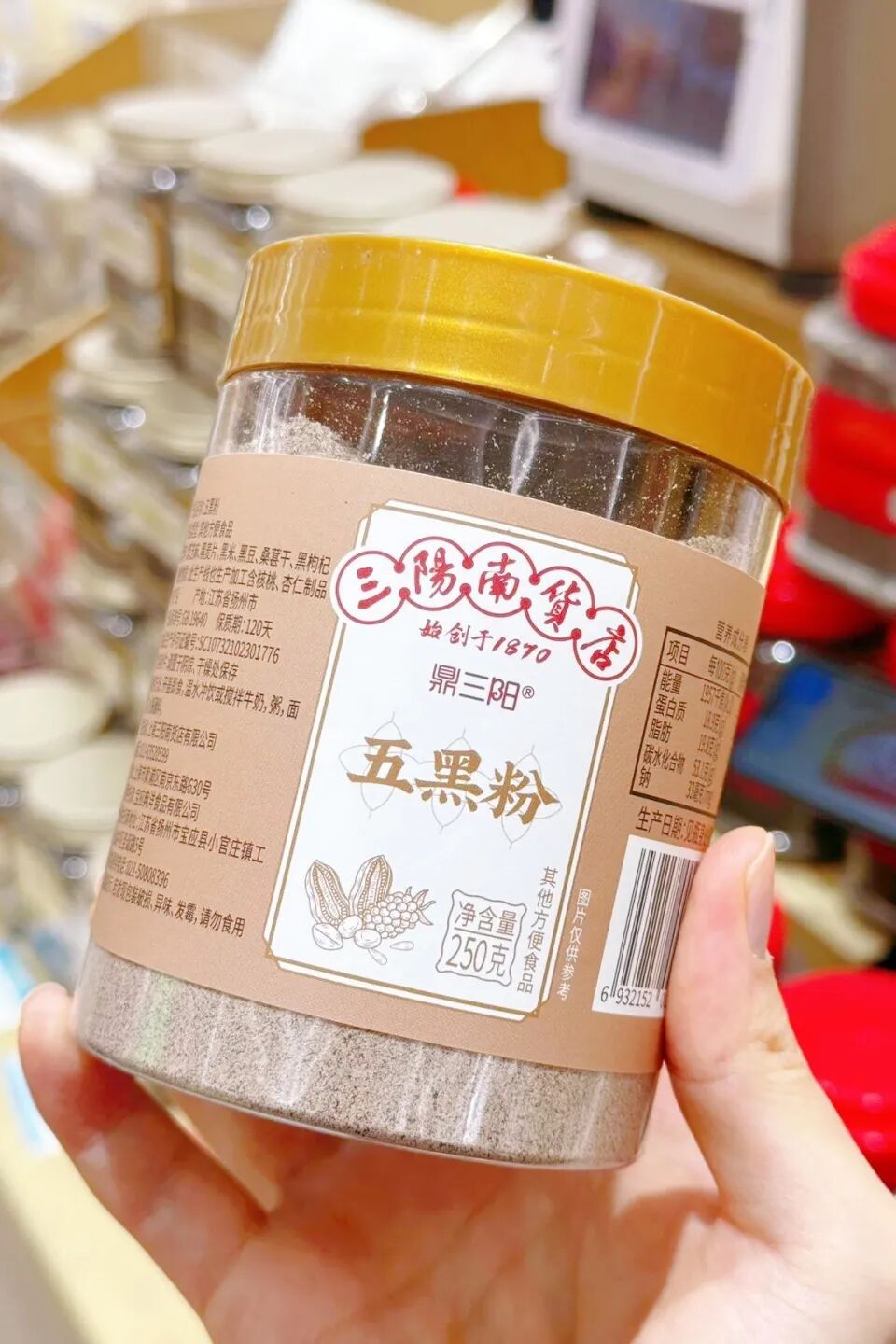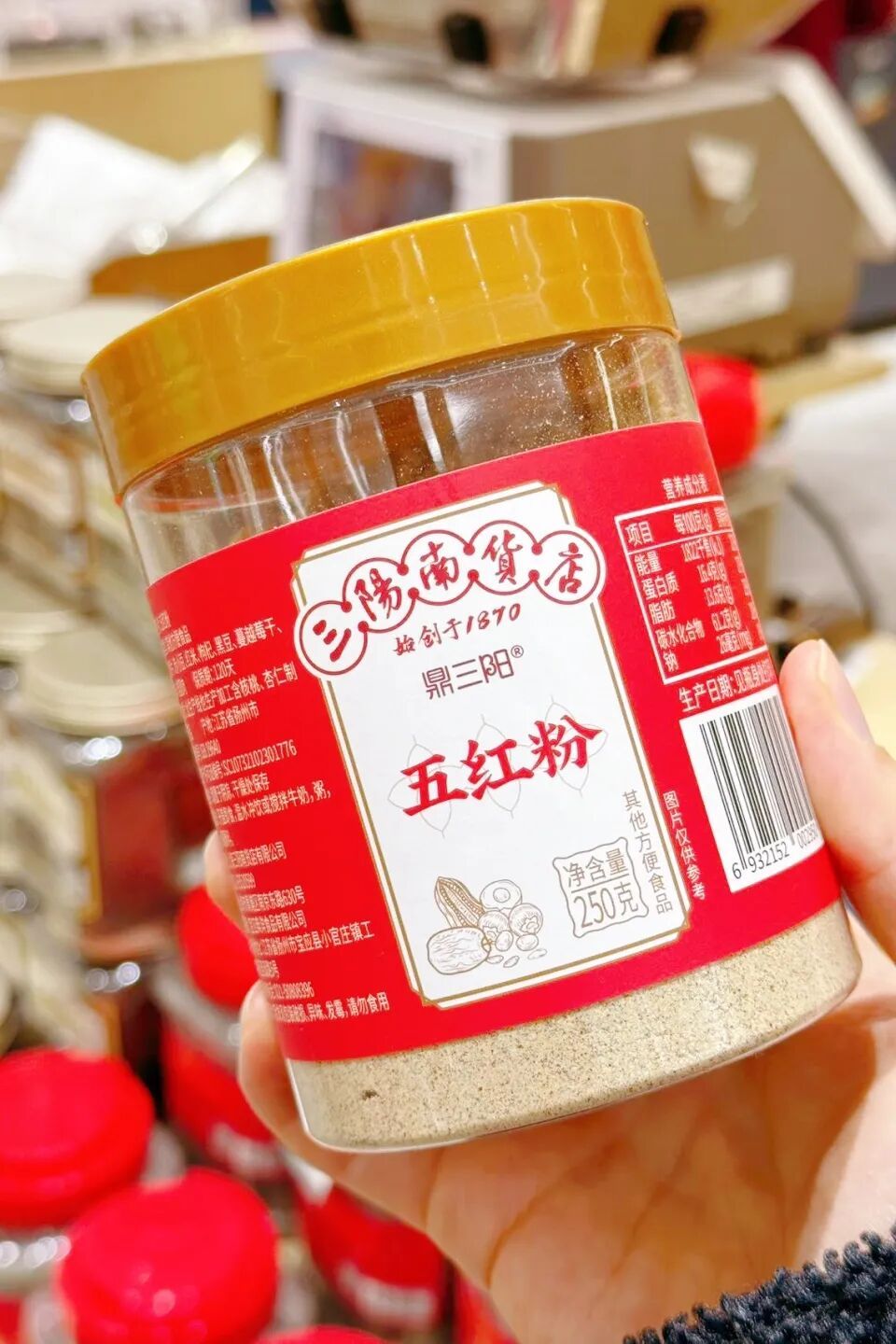 在三阳南货店的磨粉柜台上,一定会让你犯上“选择困难症”。经典的 “五黑粉” (黑芝麻、黑麦片、黑米、桑椹干、黑枸杞等),精细研磨、科学配比,是小年轻保温杯里的新宠;讨喜的 “五红粉” (枣片、赤小豆、枸杞、红米、桂圆肉等),更成为了办公室女士们午后温暖身心的甜蜜慰藉。