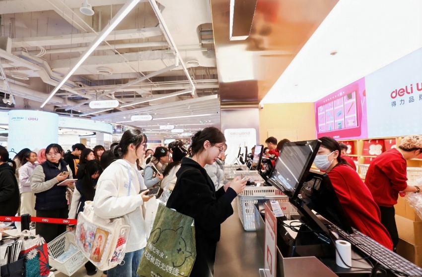 记者了解到,开业当天,得力上海品牌旗舰店人气爆棚。场外,得力双层巴士观光巡游魔都,成为流动的品牌风景线;场内,集章打卡、互动体验等活动精彩纷呈,让消费者在趣味探索中感受文具文创的科技魅力与情感温度。