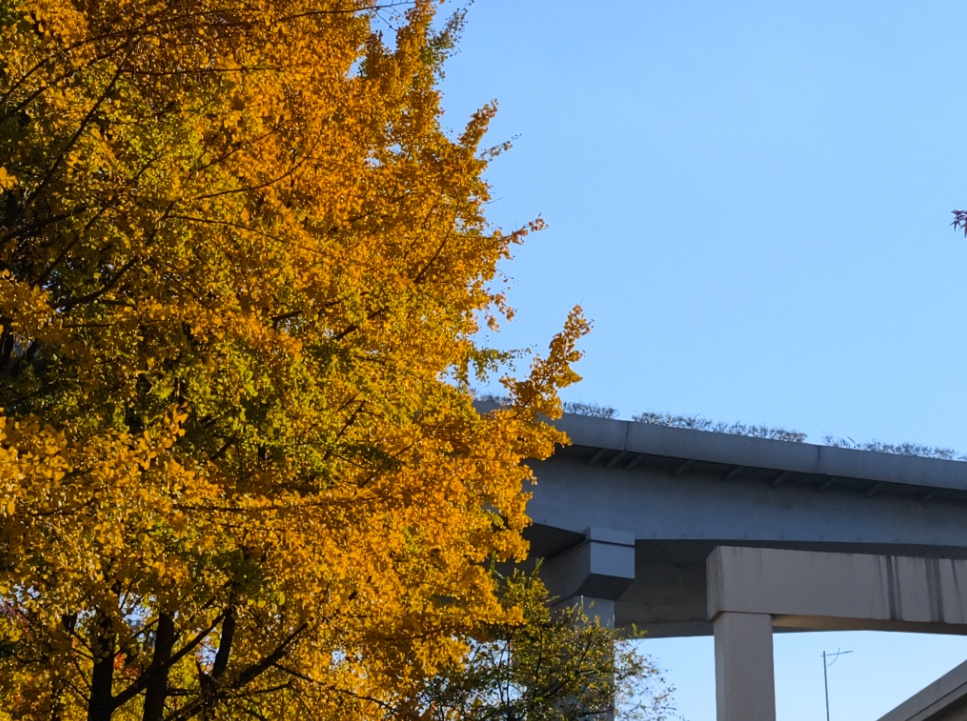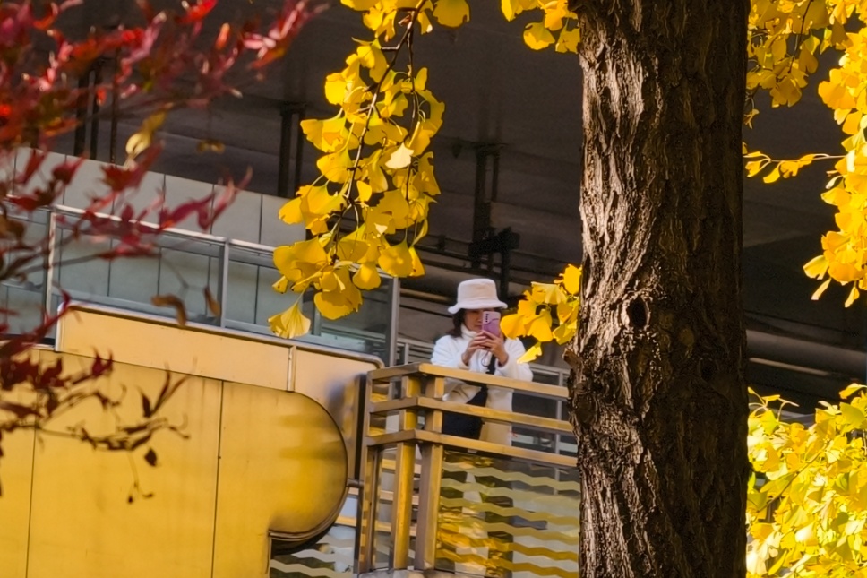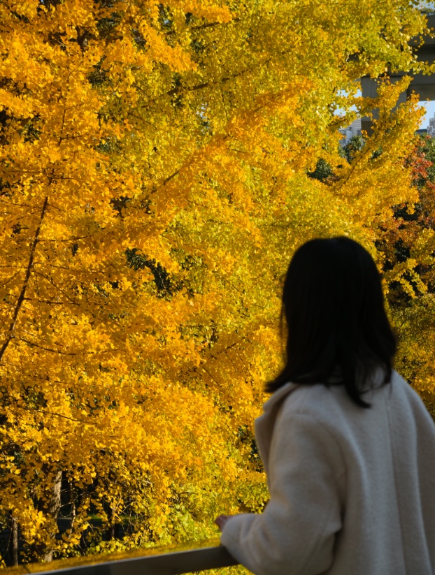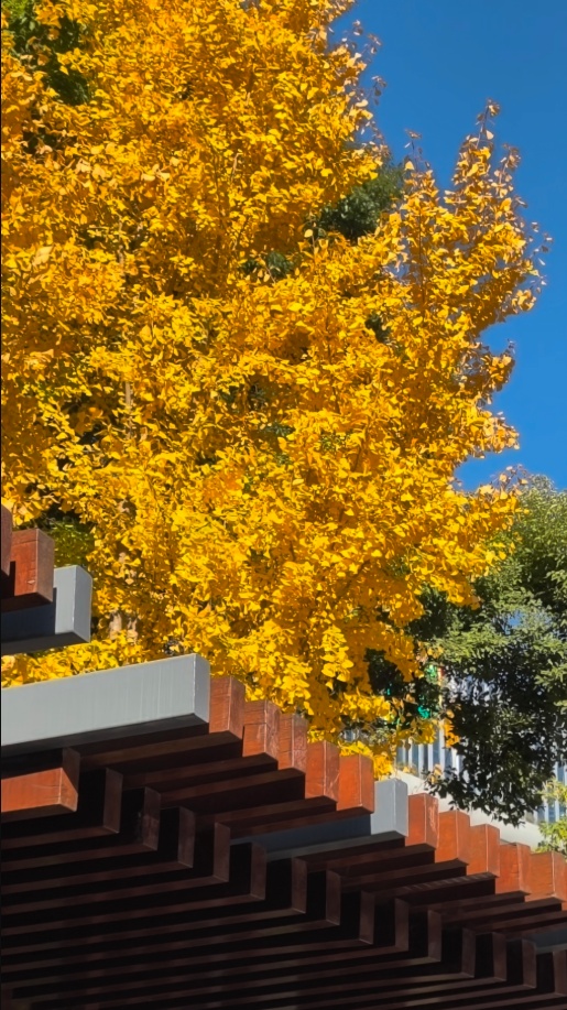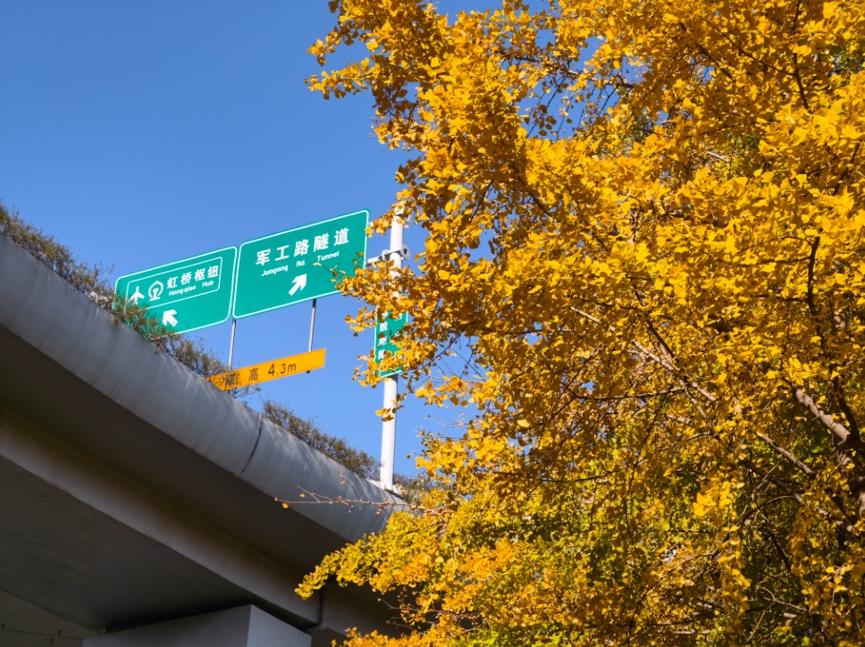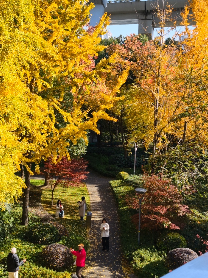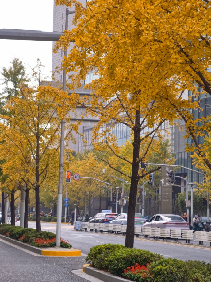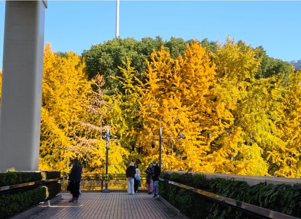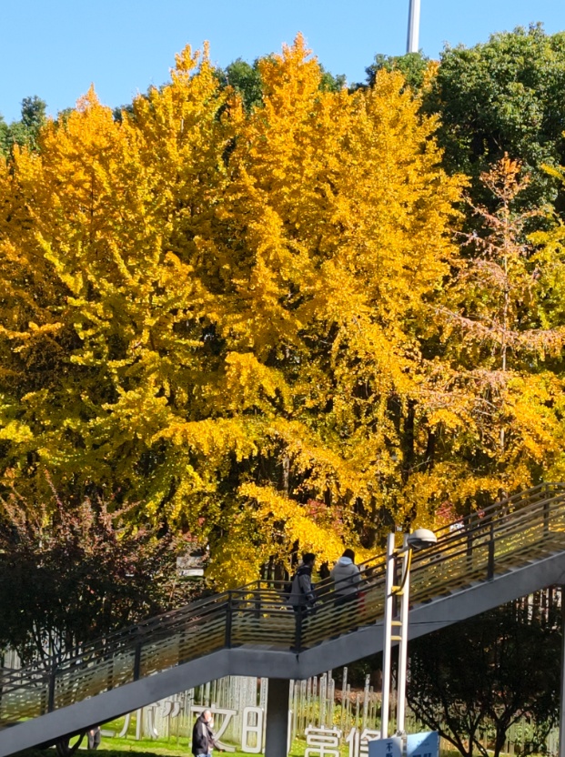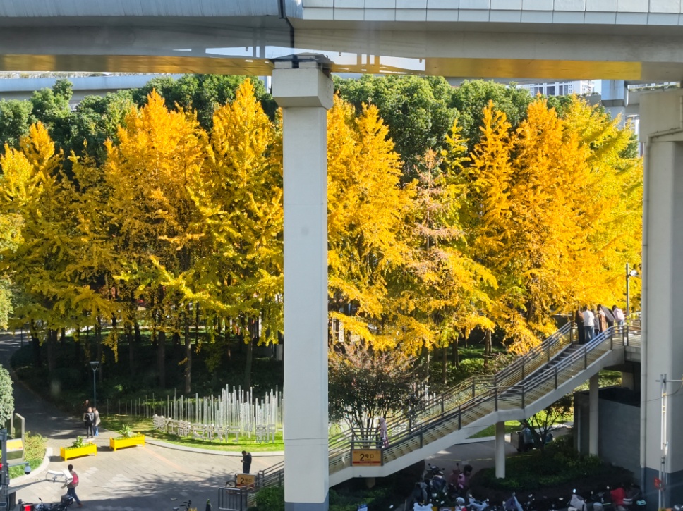 天桥“C位”视角:出口人行天桥堪称“完美机位”,轻松拉平人与树冠的高度差,随手拍出身在“金色丛林”的大片。
