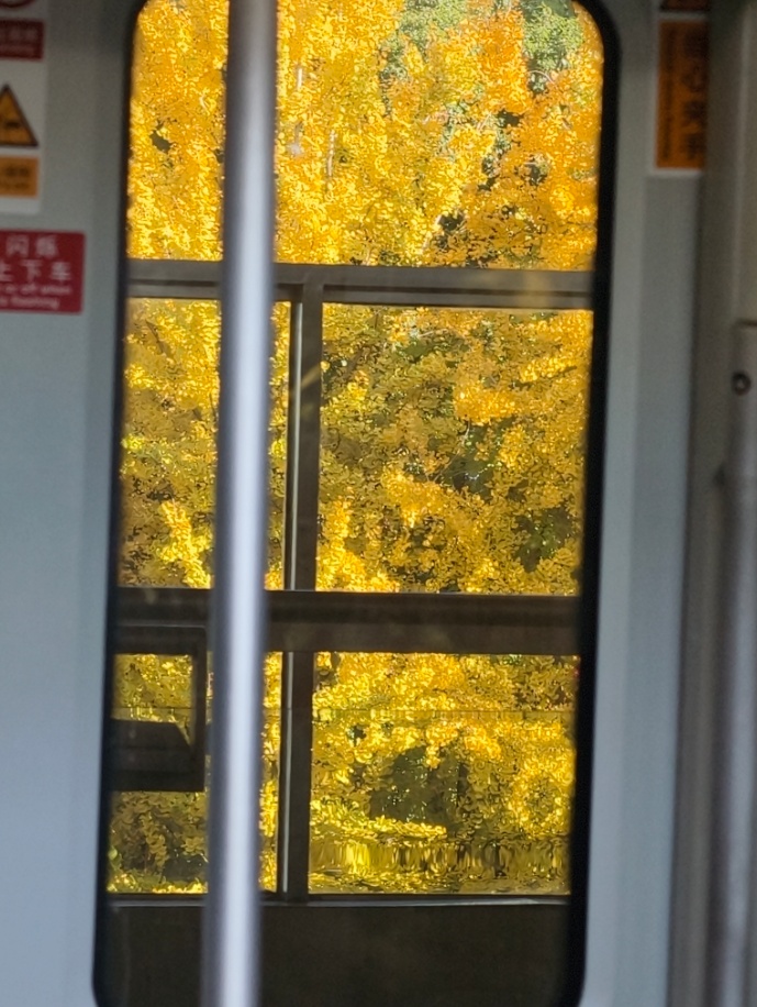 车窗取景框:列车进站时,窗外就是一幕流动的银杏电影,记得提前打开相机哦。