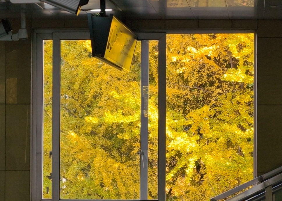 站内窗景画框:不必出站,留意那些面向银杏林的窗户,它们本身就是最完美的天然取景框。
