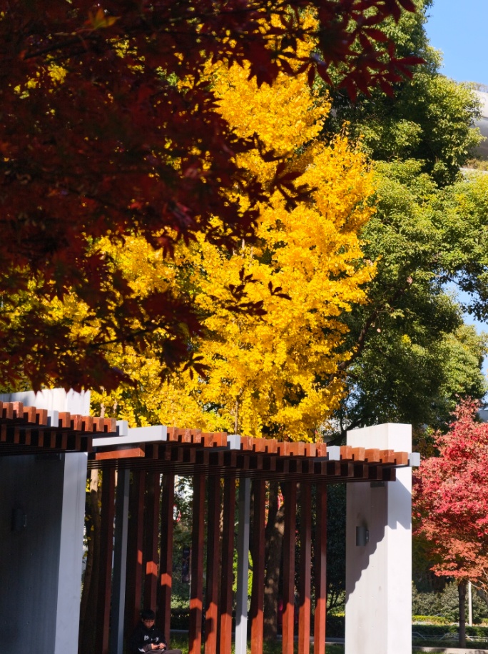 天桥俯拍小径:站在人行天桥上,以独特的俯视角度捕捉下方公园小径。当有人走过那条铺满落叶的“银杏地毯”,瞬间便能拍出故事感十足的漫步大片。