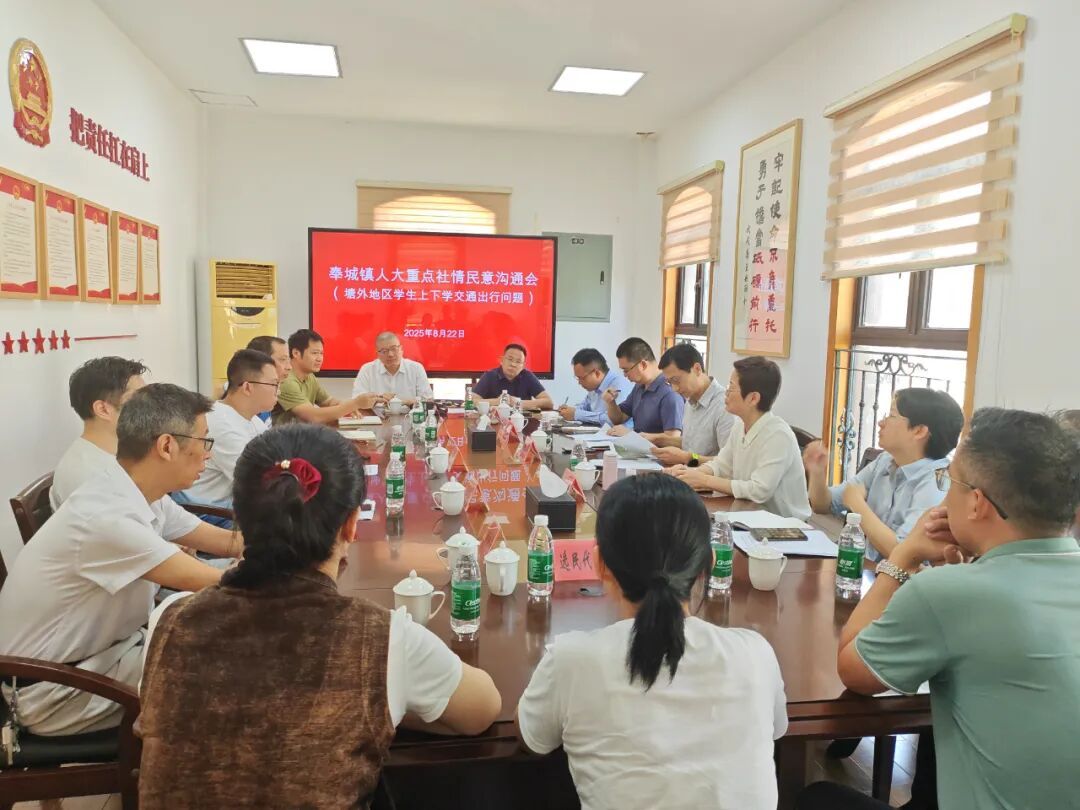 8月22日,在区人大常委会城建环保工委的大力支持下,镇人大牵头召开专题协商议事会,邀请区交通委、交能集团、公交公司等部门,与人大代表、学校代表、家长代表等共商对策。各方围绕安全因素、资金来源、车辆安排等重点难点进行反复讨论协商,最终达成共识:在上下学时段开设奉城4线区间车班次,并优化驾驶路线,为学生提供安全便捷的交通服务。