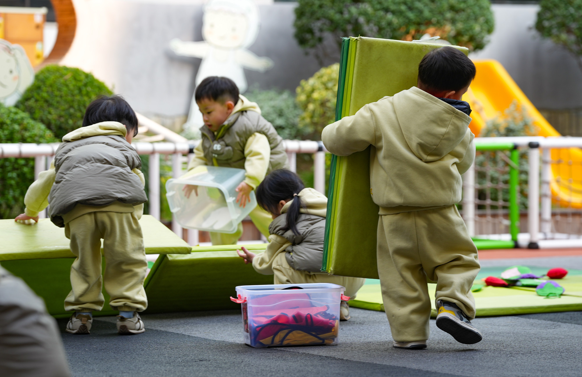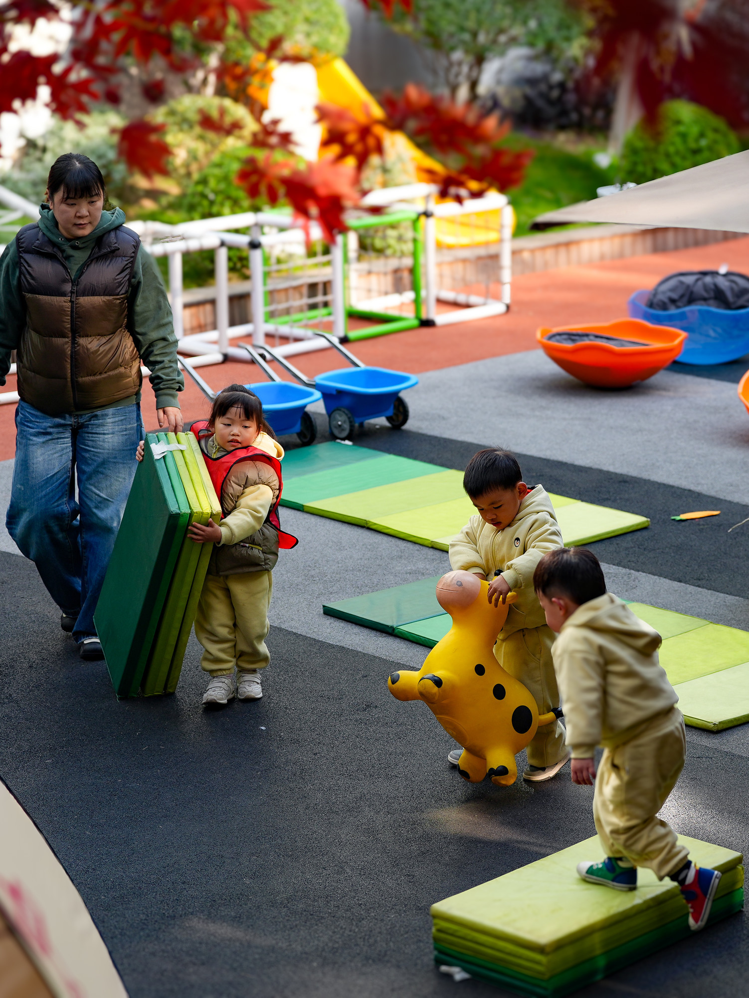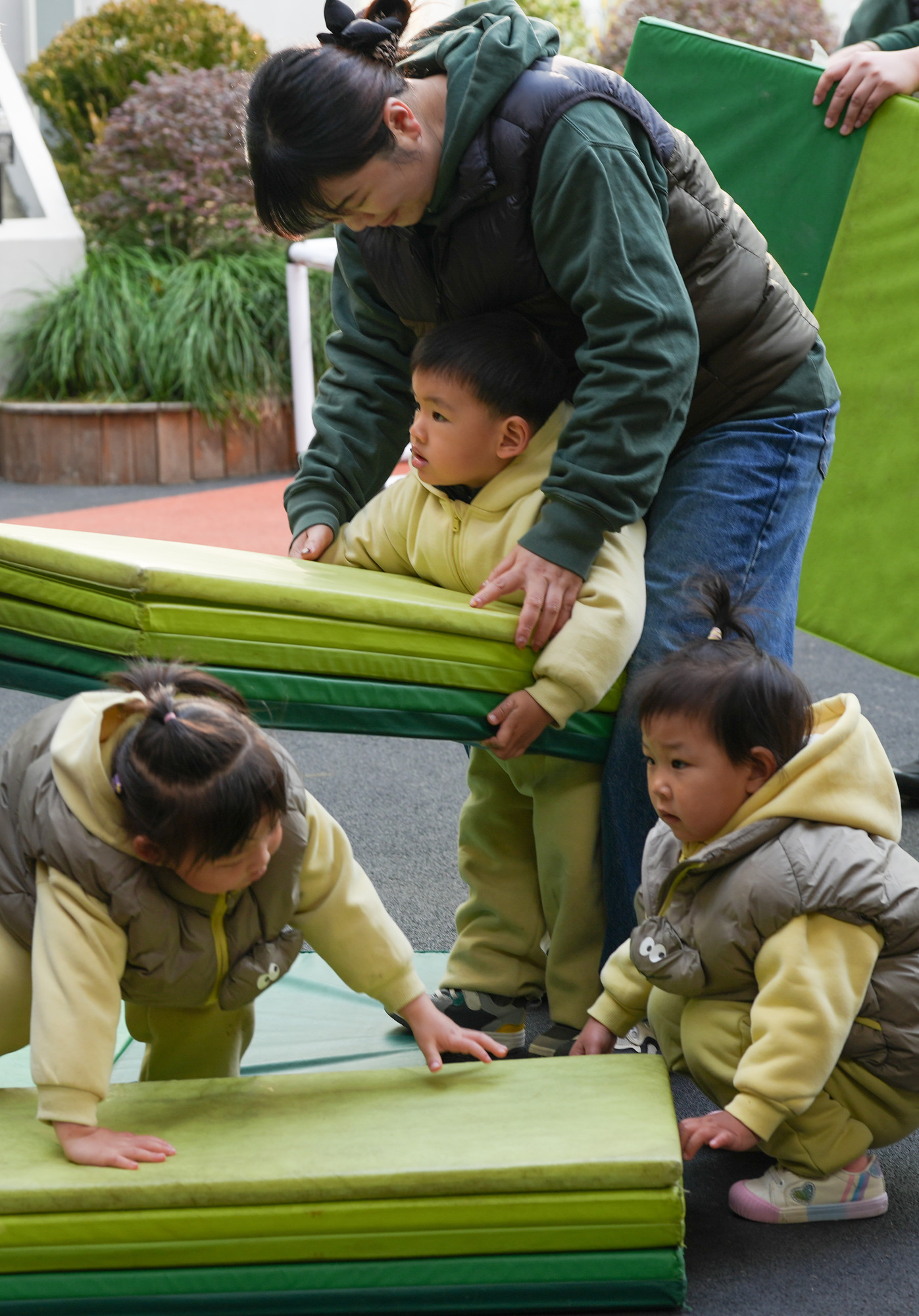 3岁不到的托班宝宝,能自己收拾操场上的运动器材?是的,你没看错!黄浦区奥林幼儿园的户外活动时分,萌宝们在老师的默契配合下,有条不紊地自主摆放、收纳运动器材:轻软的地垫、短小的独木桥,还有玩具小车小皮球……入托班短短几个月就能轻车熟路地做“小当家”,园长张颖笑称,秘诀其实很简单,就是“充分相信孩子,他们能行!”