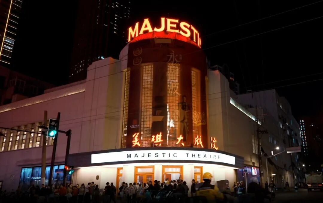 机位提示:美琪大戏院夜晚灯牌亮起时,极具复古影院氛围,建议使用大光圈拍摄人物与霓虹的合影。