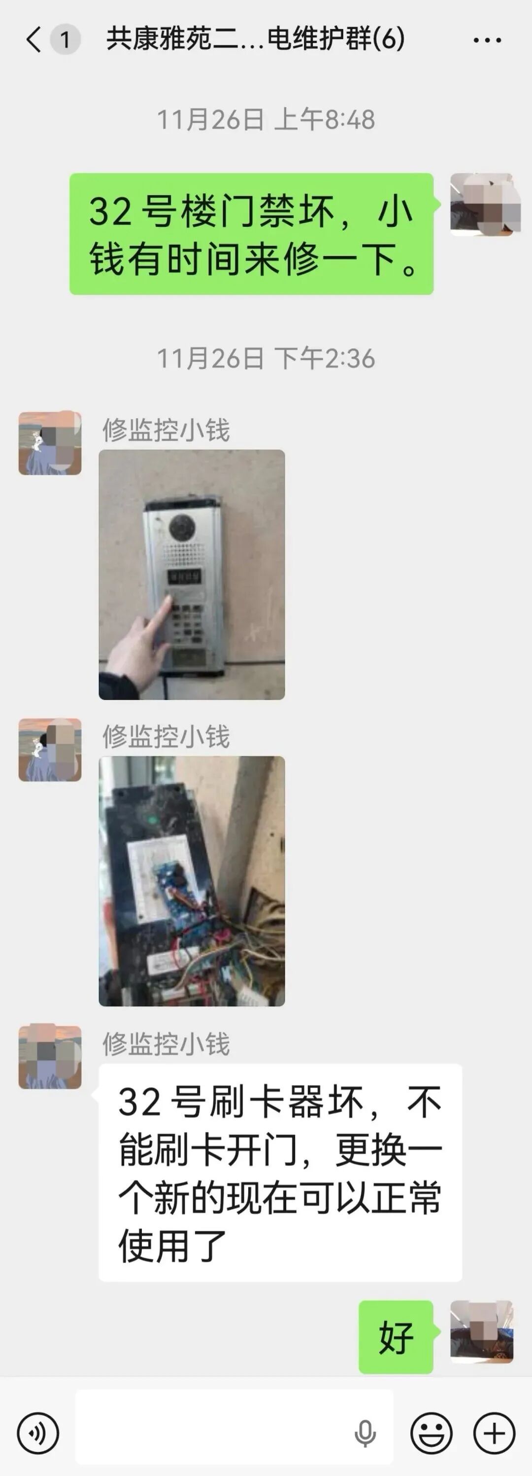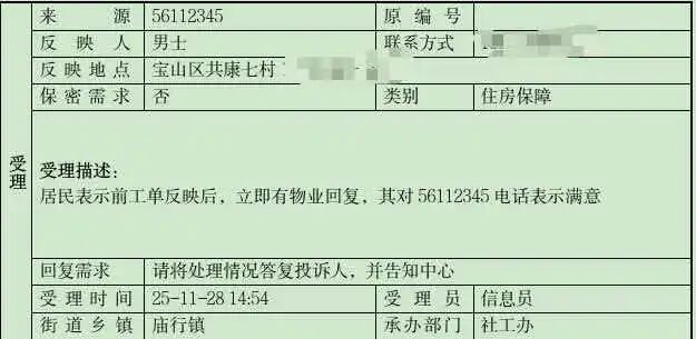 结果:关乎出入安全的门锁问题,在当天内迅速修复,保障了楼栋居民的便利与安全。