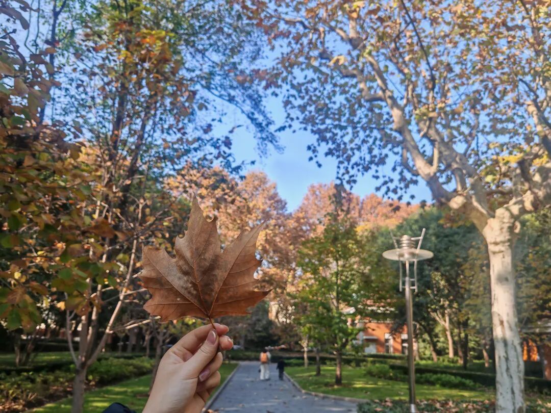 与银杏树相互映衬的是高大的梧桐。梧桐叶在深秋时节呈现出丰富多样的美拉德色彩。有的叶片是深棕与红棕的交织,像是被秋日的火焰轻轻点燃,透着一种热烈而深沉的美;有的则是浅棕与橙黄的融合,宛如一杯温暖的拿铁咖啡,散发着温馨而惬意的气息。一阵秋风吹过,梧桐叶纷纷飘落,如同一只只彩色的蝴蝶在空中翩翩起舞,最后缓缓地落在地上,为大地铺上了一层厚厚的“美拉德地毯”。