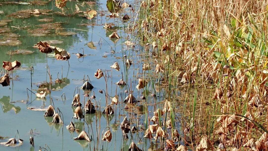 水面之下沉淀着沉静质感——枯荷勾勒出季节限定的独特韵味
