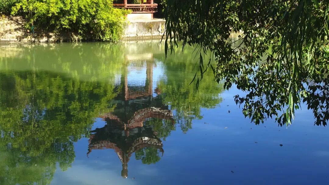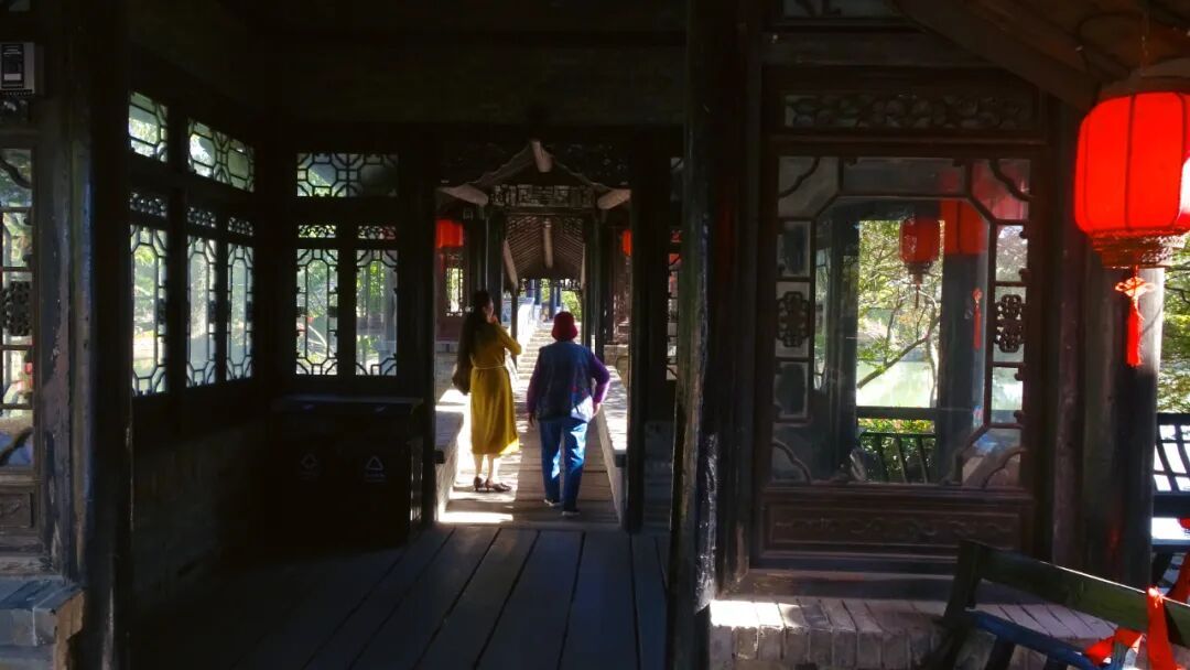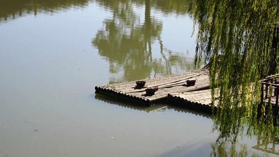水面之上藏着水博园的灵动暖意——小桥流水庭院,竹筏与枝影一起晃动