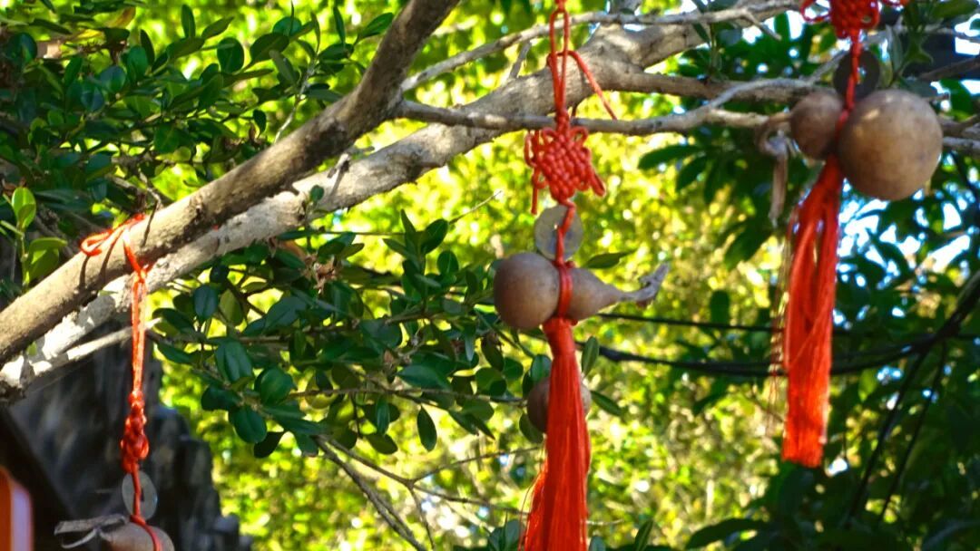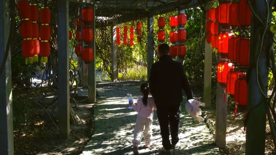 红灯笼映廊桥中国结系葫芦让红韵与烟火气撞了个满怀