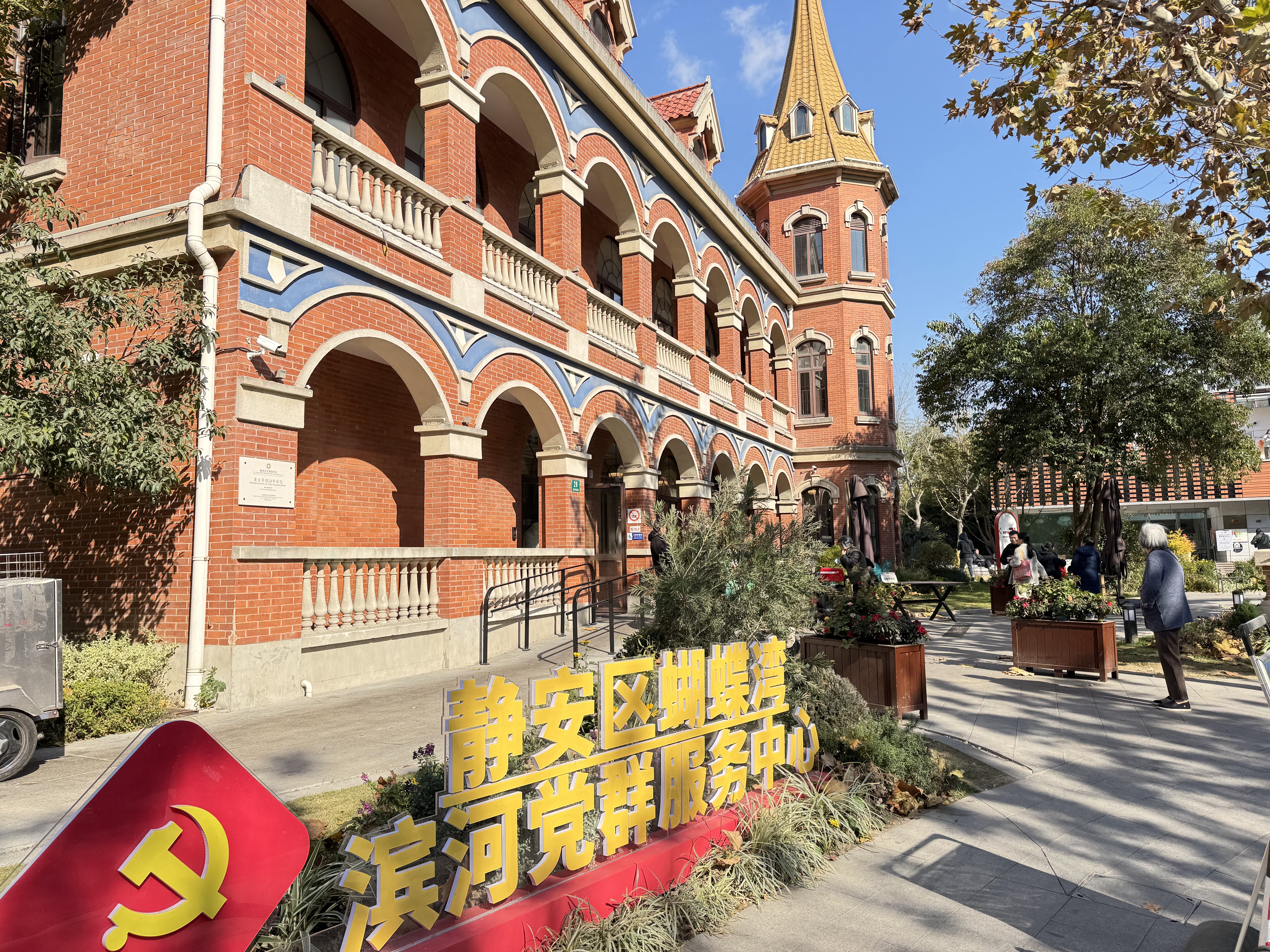 记者近日实地探访发现,这幢童话城堡般的建筑,其魅力远不止于“最美社区食堂”。蝴蝶食坊社区食堂所在的建筑,现在名叫“蝴蝶堡”,是近期揭牌的静安区蝴蝶湾滨河党群服务中心的阵地之一。