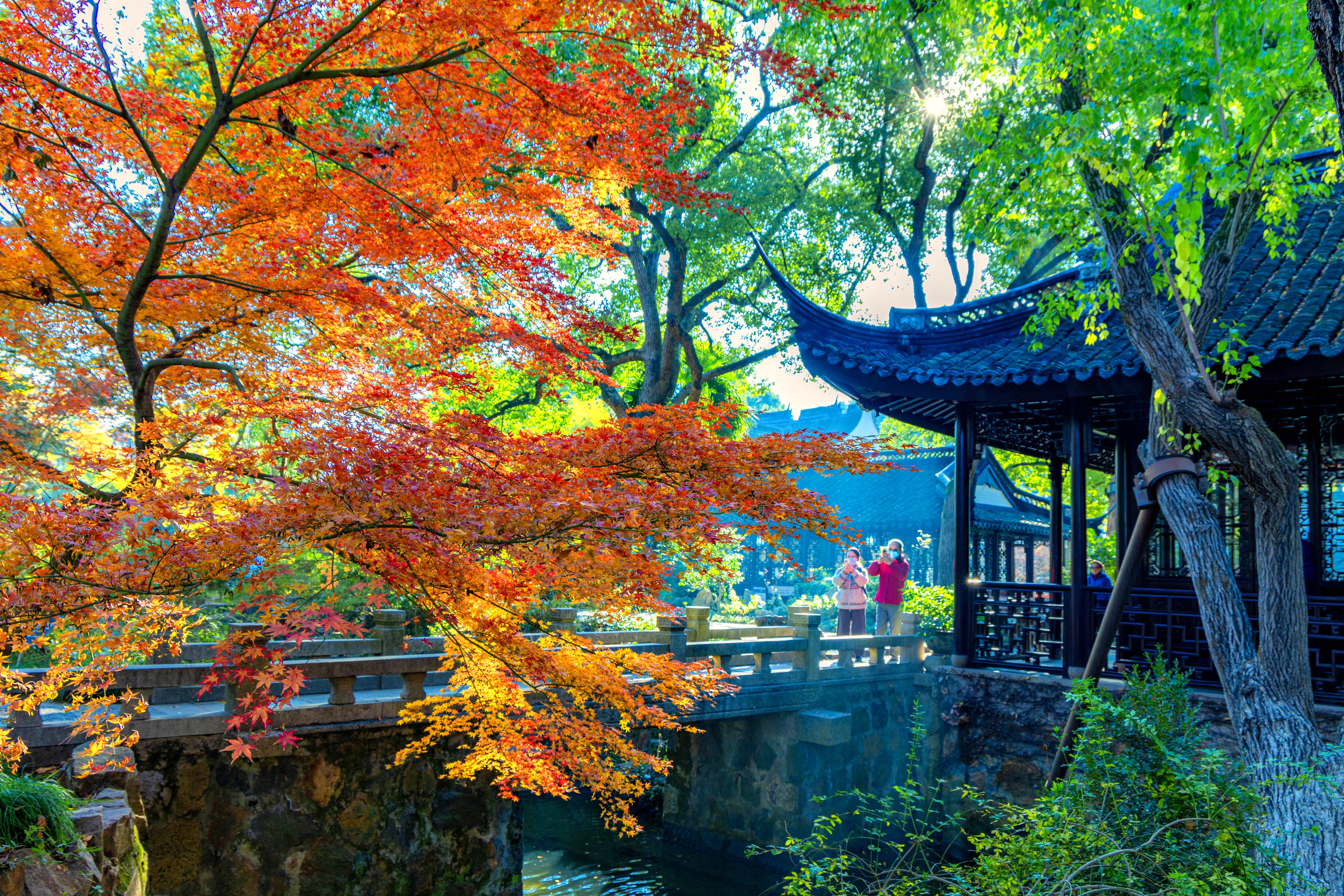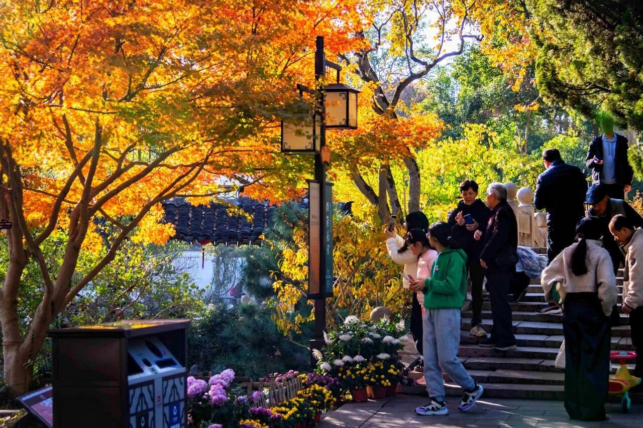 时下正值观赏红叶的最佳时期,记者在上海醉白池公园看到,多处枫树已由绿转黄或正由黄转红,不少市民在初冬暖阳下拍照赏景,感受红叶的炽热浪漫。