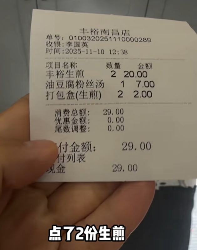 镜头中,他熟门熟路走进丰裕南昌店,打包了两份招牌生煎、一碗油豆腐粉丝汤