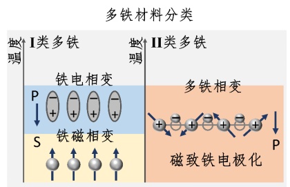 上世纪50年代,诺贝尔物理奖获得者朗道在其相变唯象理论中就指出了磁和电存在耦合关系。事实上,在自然界中,确有这样一类特殊材料,它同时具备铁电性(可被电场控制)和磁性(可被磁场控制),就像一个有两个开关的智能设备。比如铁酸铋(BiFeO₃)和锰酸铽(TbMnO₃),宏观上它们可以表现出铁电态和磁态的同时改变,这来源于铁电性和磁性之间的相互影响,就像一对舞伴,当电性(领舞者)变化时,磁性(跟随者)也会随之调整。所以多铁材料是一种同时拥有"电开关"和"磁开关"双重功能的智能材料。