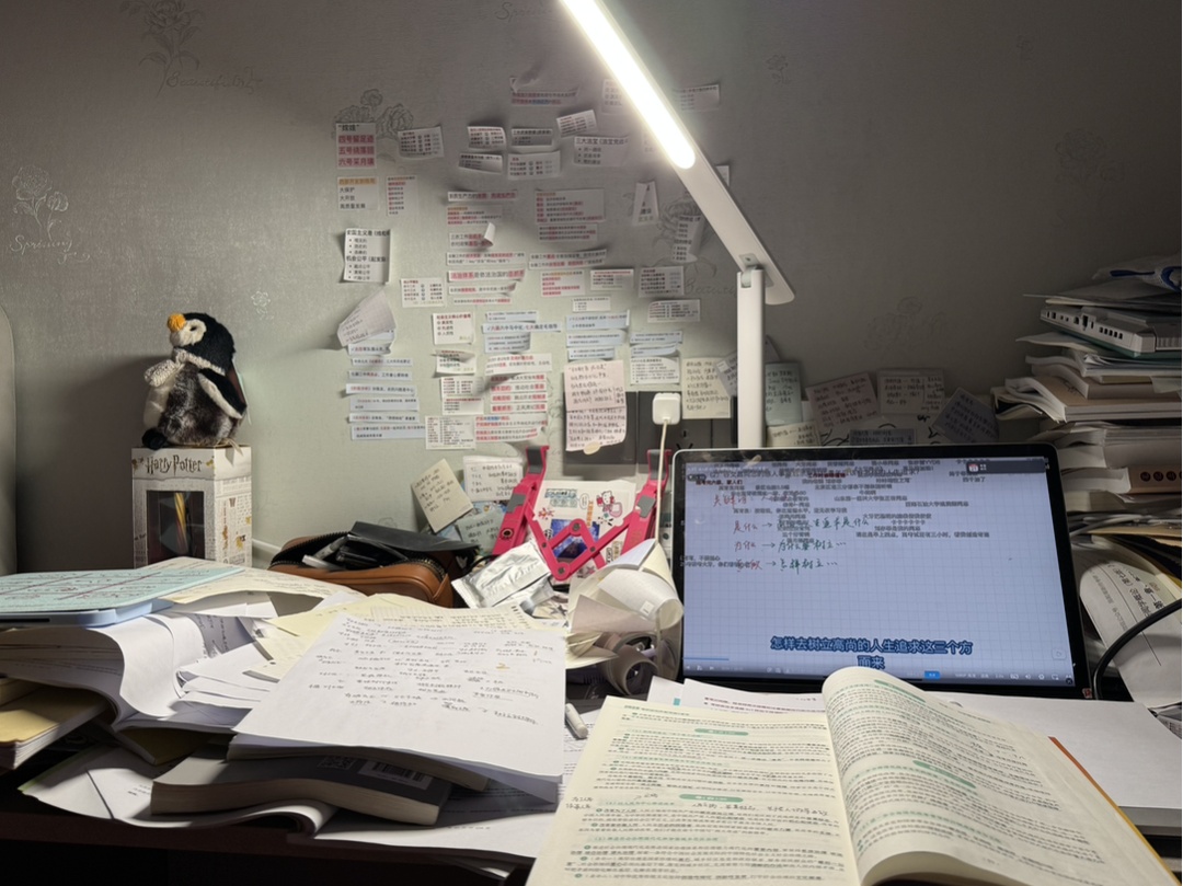 七个月备考,我常觉得自己像“在漆黑的屋子里洗衣服”。暑假连续两个月无法专注时,我也崩溃过。但我告诉自己:心里再焦虑,手上不能停。我不做精细到分钟的计划,只设定阶段目标,每天稳扎稳打学6-8小时。不被社交媒体上的节奏带偏,找到自己的步调最重要。