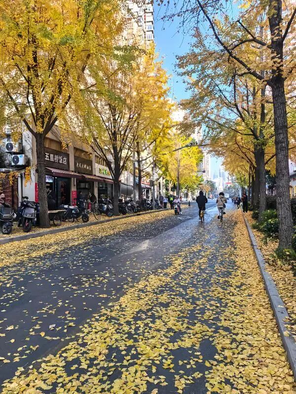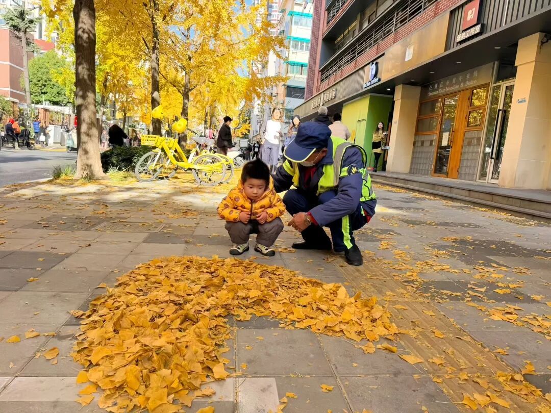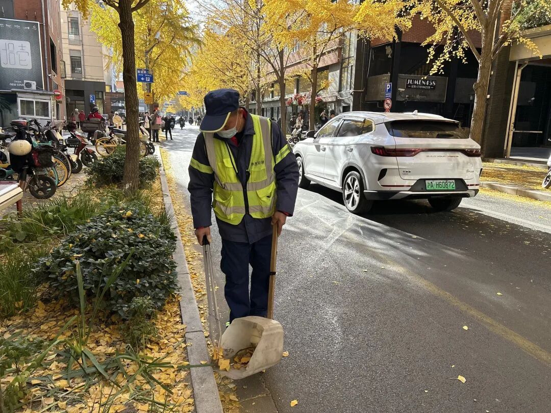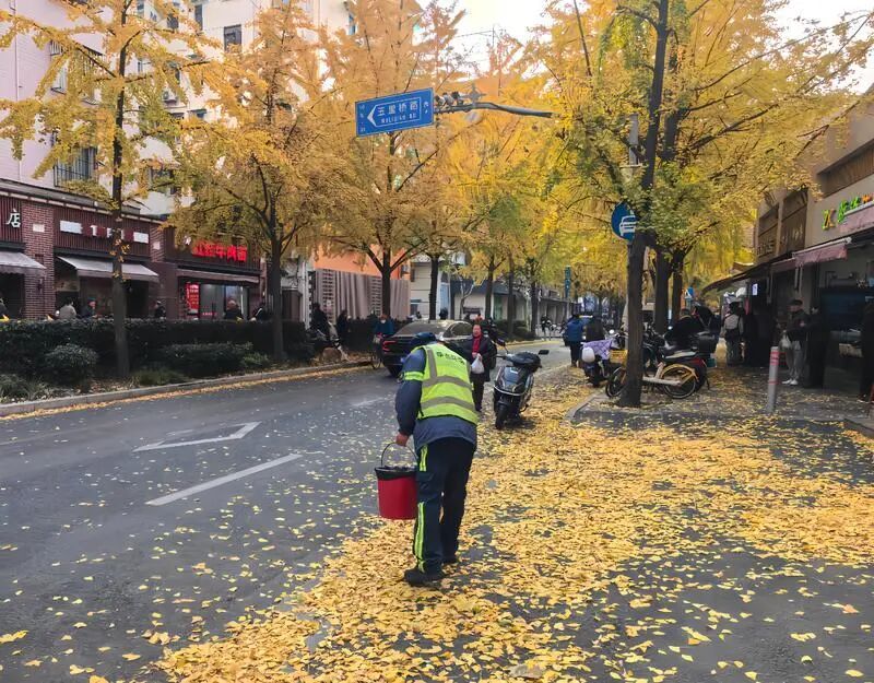 “银杏叶干燥易燃,烟头是最大隐患,” 作为组长,邱明新每天一再叮嘱组员们碰到香烟头要及时捡,绝不能掉以轻心。每天,环卫工人们从南至北会展开一遍又一遍的地毯式排查,路面缝隙里的细碎杂物被一一清走,用精细筑牢这条“落叶不扫”道路的秋日浪漫。